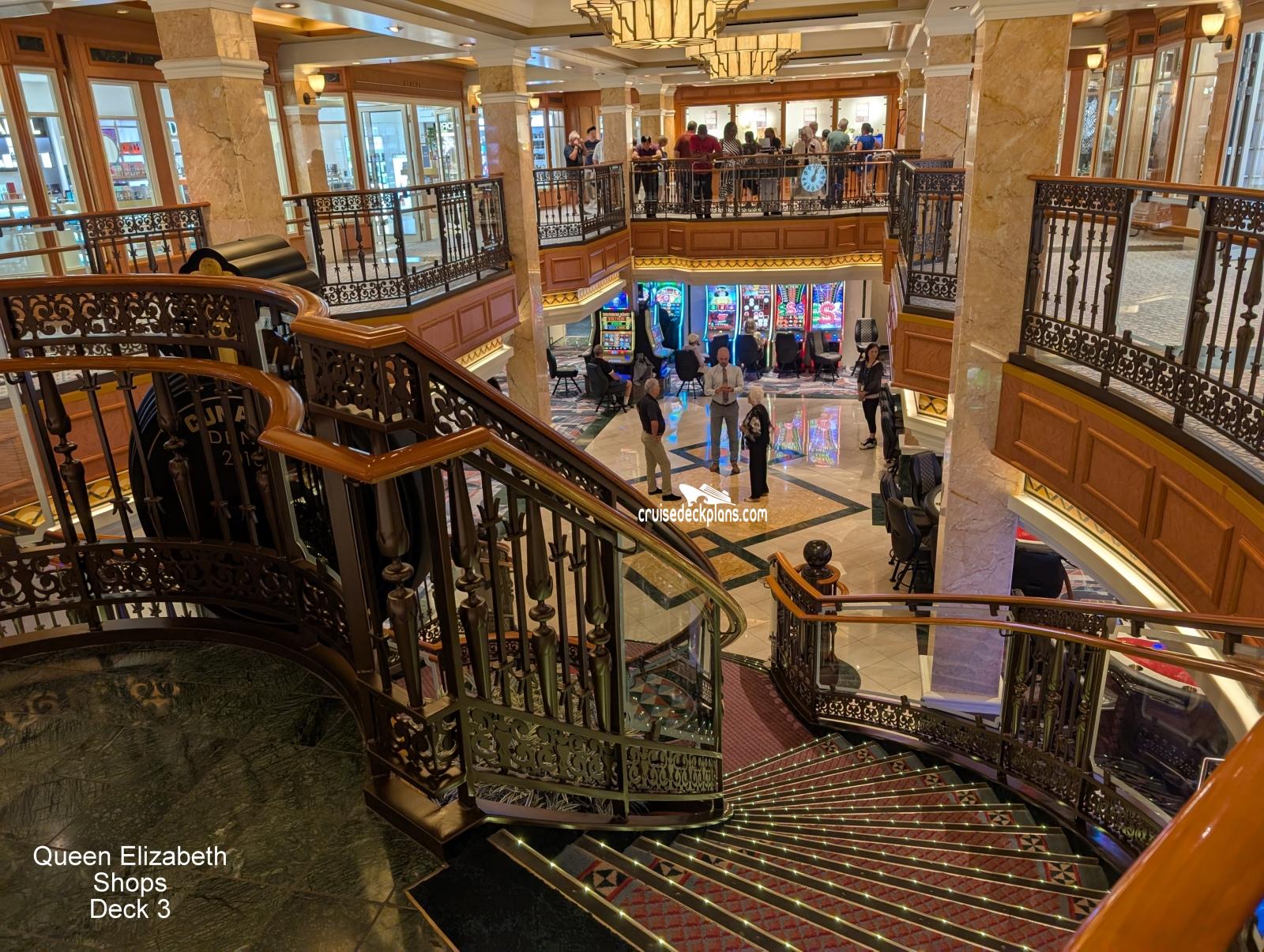This page shows actual pictures for Queen Elizabeth The Royal Arcade. Most of our pictures are contributed by actual cruisers. You will find that all the Queen Elizabeth The Royal Arcade pictures on this page also posted directly onto our deck plans near the actual location the photo was taken. You can browse the pictures here or you can click on them as you are viewing the Queen Elizabeth deck plans. For deck plan viewing click on the ship button above or scroll down to view the pictures on this page.