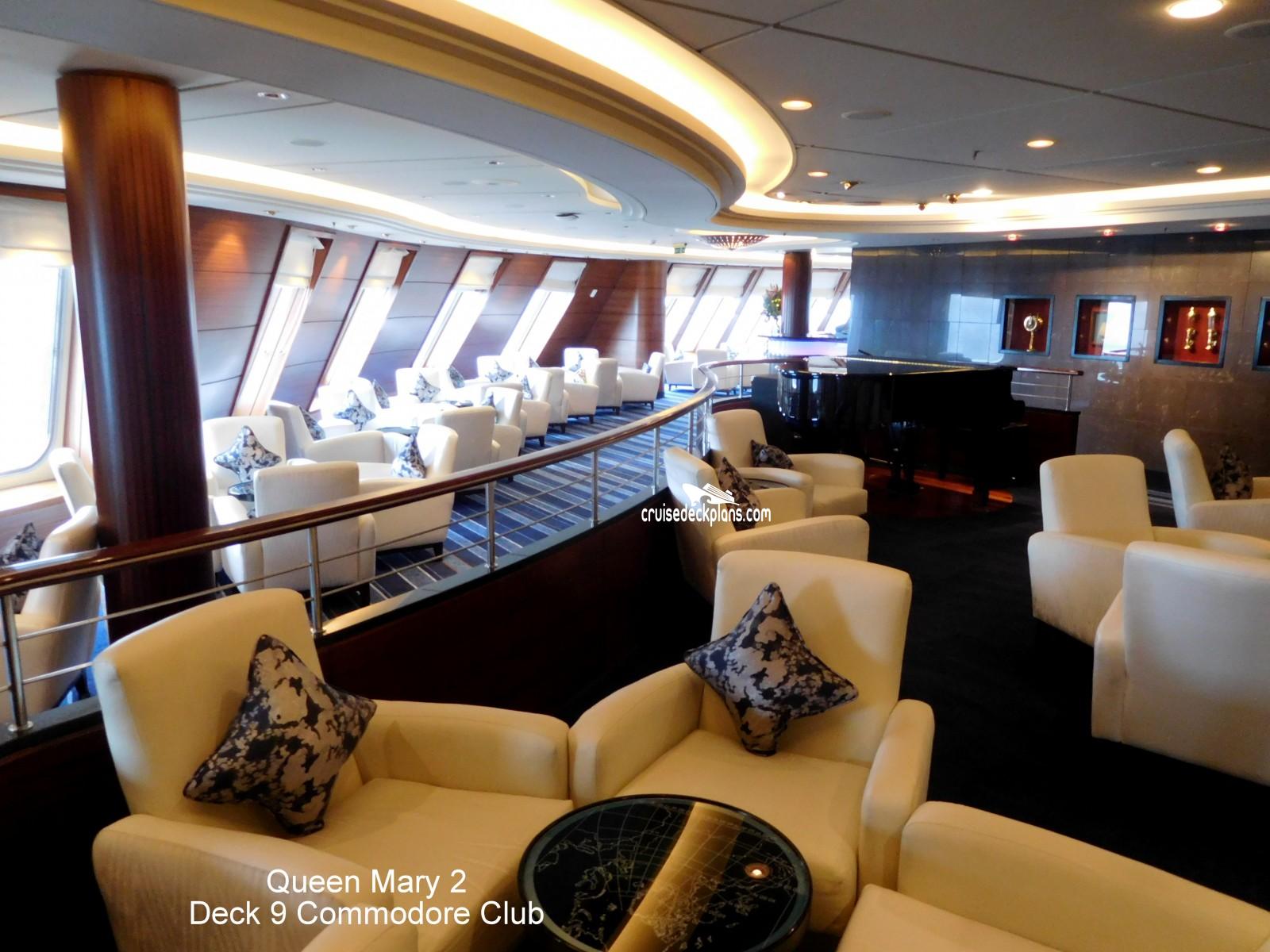 Queen Mary 2 Commodore Club is located on Deck 9 (deck). We have provided the deck plan image for your reference.