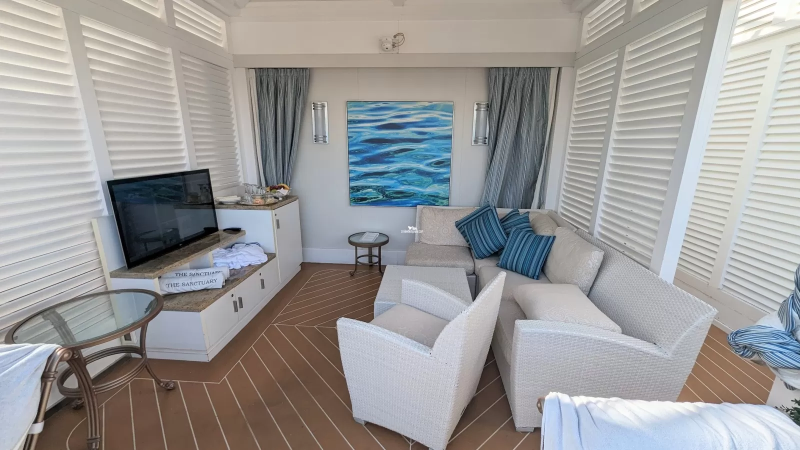 This page shows actual pictures for Regal Princess The Sanctuary. Most of our pictures are contributed by actual cruisers. You will find that all the Regal Princess The Sanctuary pictures on this page also posted directly onto our deck plans near the actual location the photo was taken. You can browse the pictures here or you can click on them as you are viewing the Regal Princess deck plans. For deck plan viewing click on the ship button above or scroll down to view the pictures on this page.