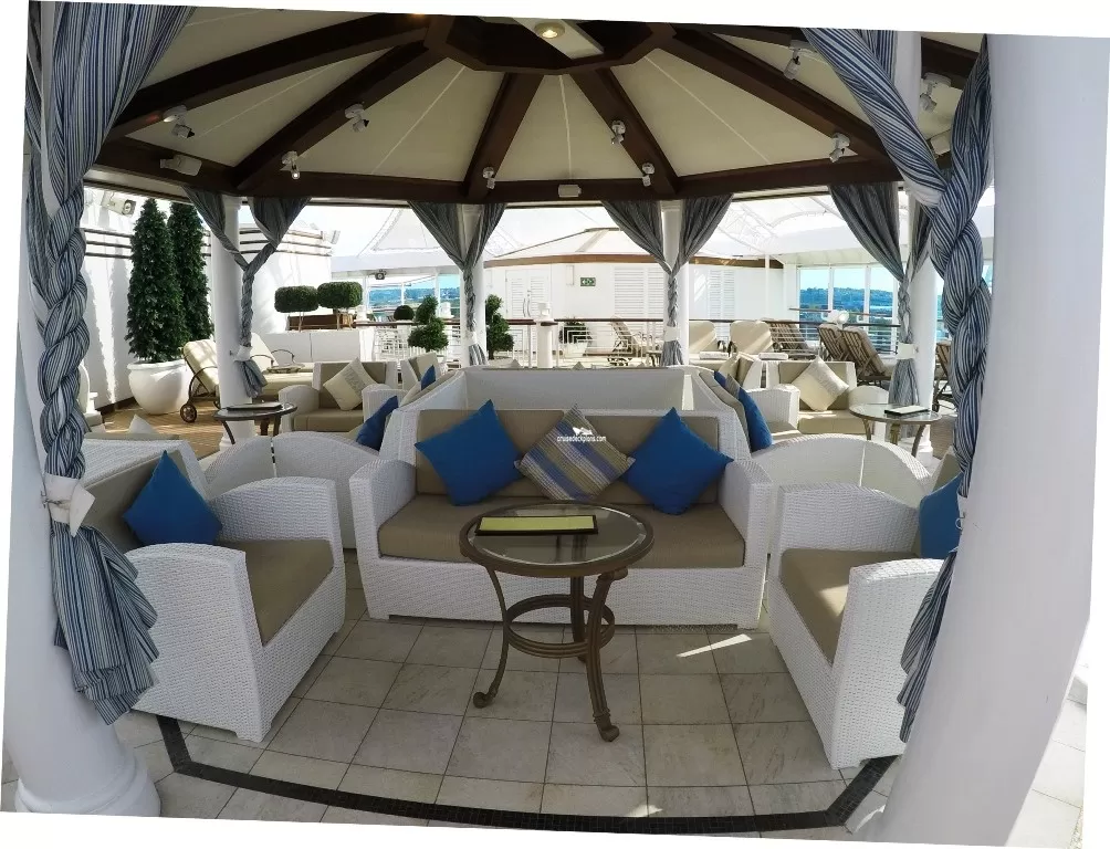 Provides an oasis of tranquility for guests with private cabanas with their own refrigerators and flat screen TV's. Leading off the sanctuary is the ship's adult only retreat pool with four private cabanas at the edge of the pool and two hot tubs.