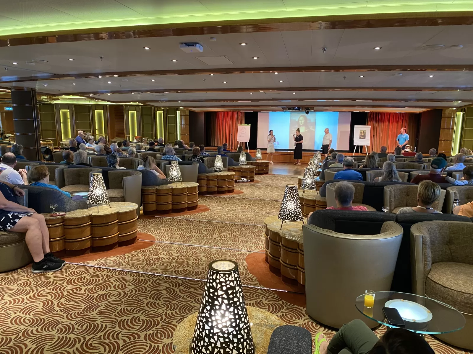 The ship's third main entertainment venue. With its own bar, during the day activities range from bingo and art auctions to enrichment lectures. At night live dance bands, late night comedy, cabaret features and themed nights (such as rock 'n' roll and 70's dance) will be on offer.