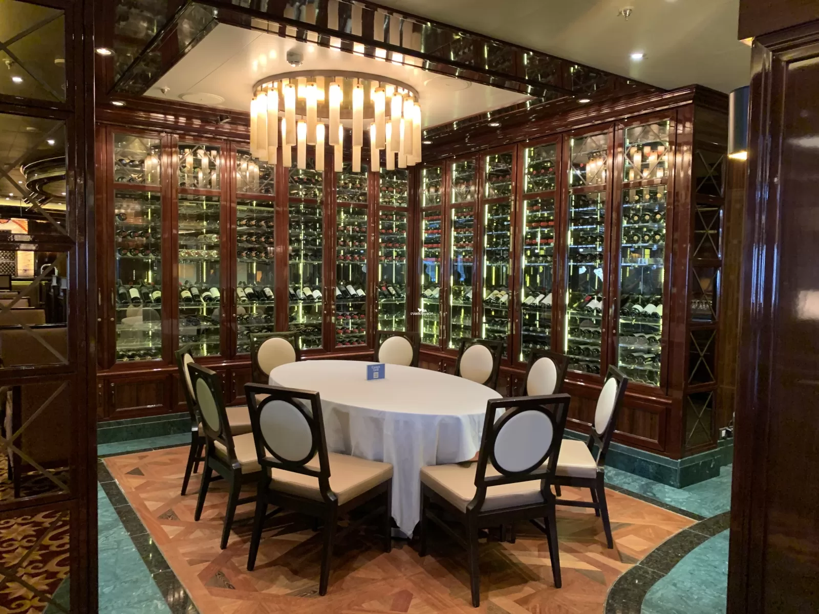 One of Royal Princess' two additional charge specialty restaurants and specializes in premium steak and seafood including lobster, scallops, clams and cooked-to-order steaks. Some items may be subject to additional charge and reservations are recommended. The room has a club like atmosphere to it and includes live piano entertainment.