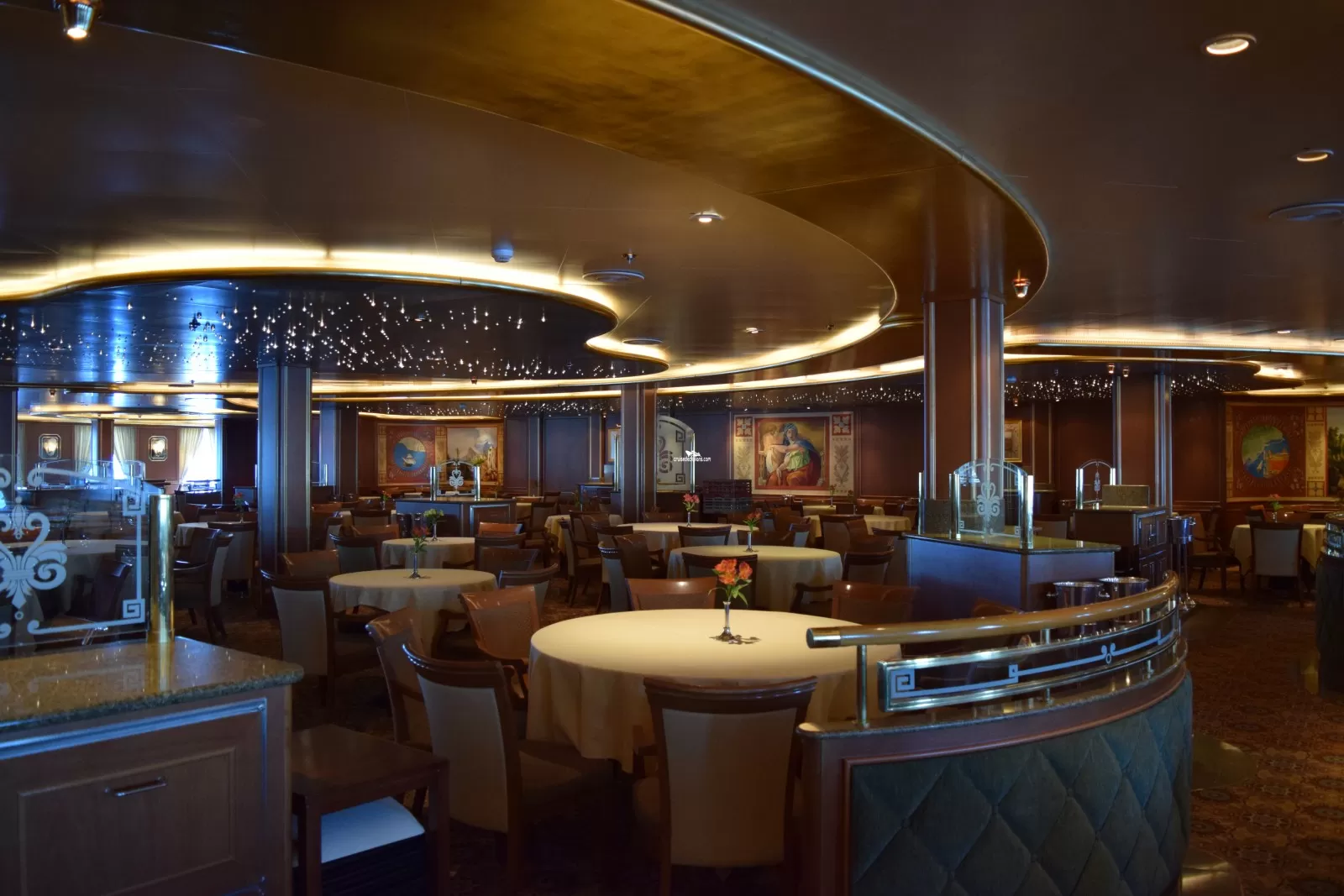 Open for dinner only between 5.30pm and 10pm with anytime seating arrangements allowing passengers the flexibility to select a dining time to suit each day, seated either with other guests or at a table for two (dependent upon availability).