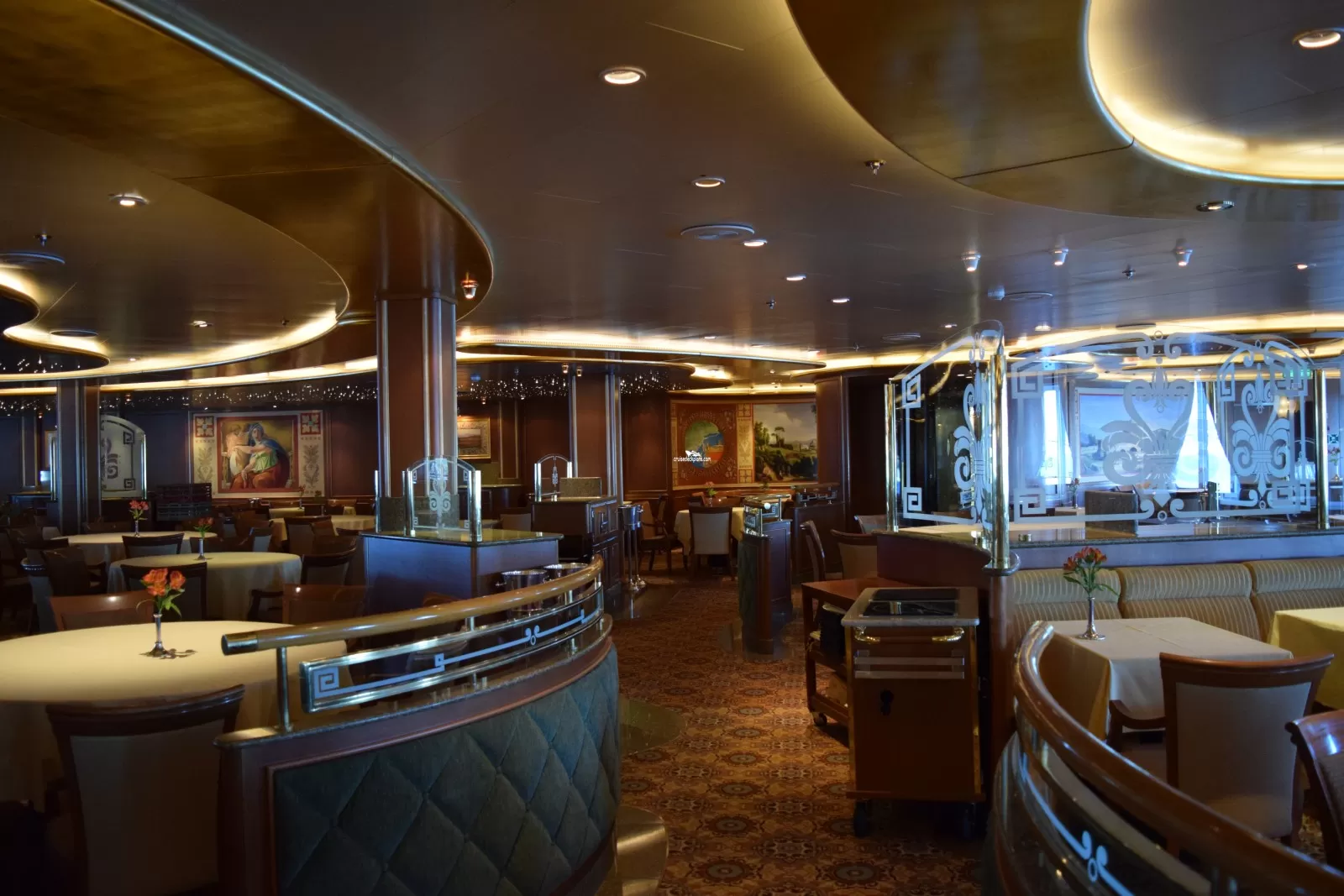 This page shows actual pictures for Ruby Princess Michelangelo Dining Room. Most of our pictures are contributed by actual cruisers. You will find that all the Ruby Princess Michelangelo Dining Room pictures on this page also posted directly onto our deck plans near the actual location the photo was taken. You can browse the pictures here or you can click on them as you are viewing the Ruby Princess deck plans. For deck plan viewing click on the ship button above or scroll down to view the pictures on this page.