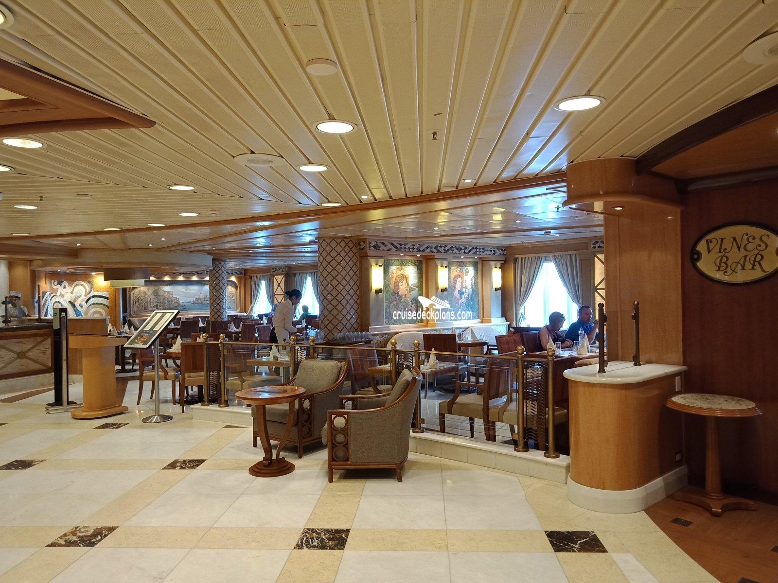 This page shows actual pictures for Sapphire Princess Vines Bar. Most of our pictures are contributed by actual cruisers. You will find that all the Sapphire Princess Vines Bar pictures on this page also posted directly onto our deck plans near the actual location the photo was taken. You can browse the pictures here or you can click on them as you are viewing the Sapphire Princess deck plans. For deck plan viewing click on the ship button above or scroll down to view the pictures on this page.