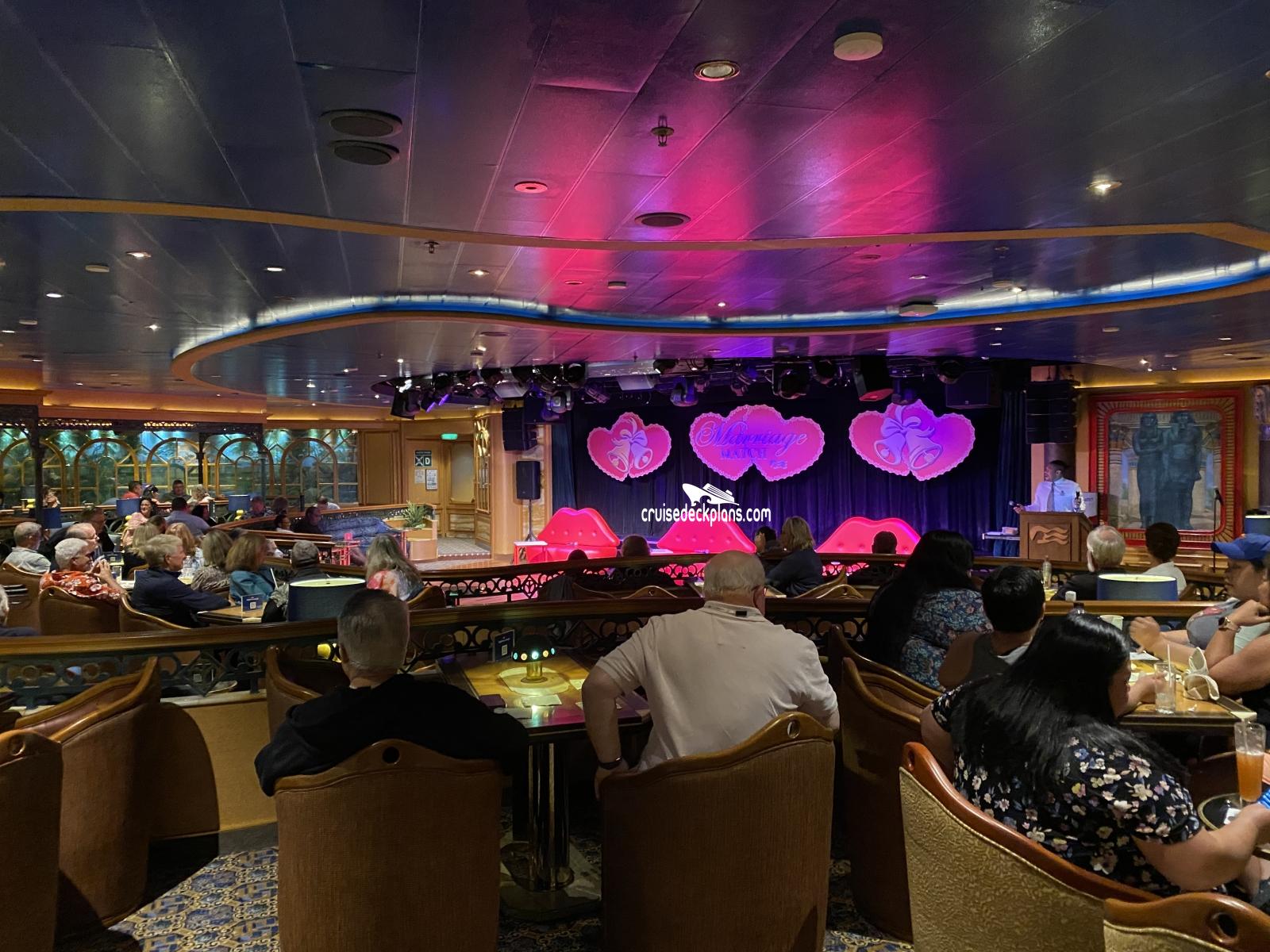 Small show lounge with stage and dance floor. Usually has comedy and game shows as well as art auctions.