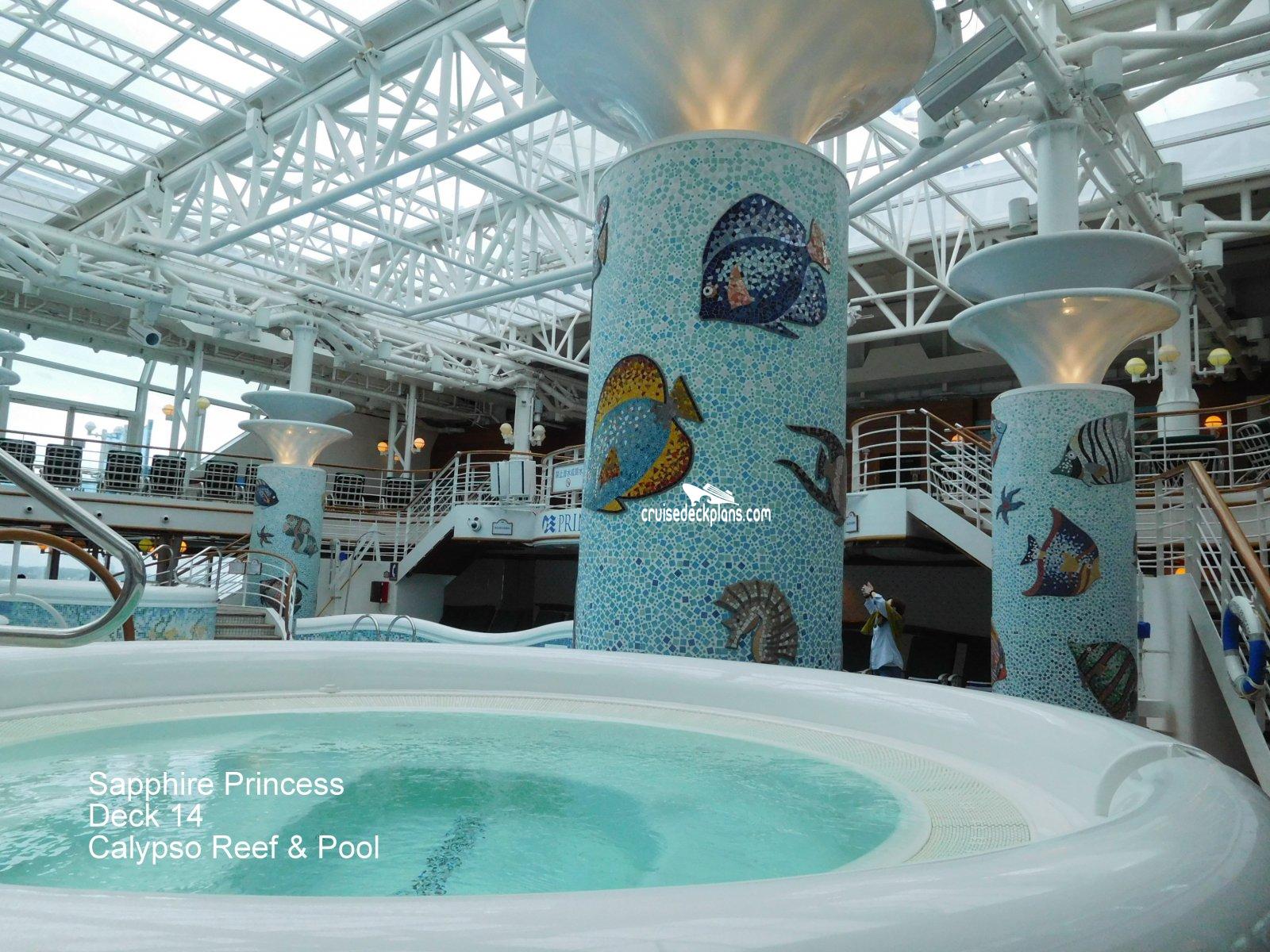 This page shows actual pictures for Sapphire Princess Calypso Reef & Pool. Most of our pictures are contributed by actual cruisers. You will find that all the Sapphire Princess Calypso Reef & Pool pictures on this page also posted directly onto our deck plans near the actual location the photo was taken. You can browse the pictures here or you can click on them as you are viewing the Sapphire Princess deck plans. For deck plan viewing click on the ship button above or scroll down to view the pictures on this page.