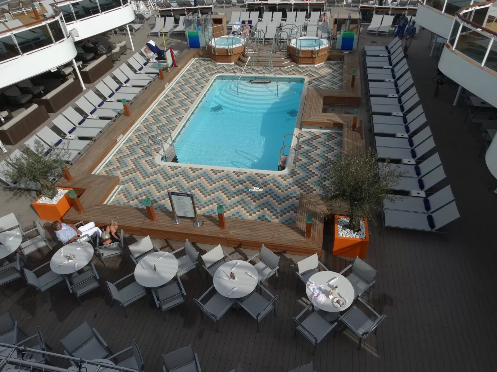 This page shows actual pictures for Koningsdam Lido Pool. Most of our pictures are contributed by actual cruisers. You will find that all the Koningsdam Lido Pool pictures on this page also posted directly onto our deck plans near the actual location the photo was taken. You can browse the pictures here or you can click on them as you are viewing the Koningsdam deck plans. For deck plan viewing click on the ship button above or scroll down to view the pictures on this page.