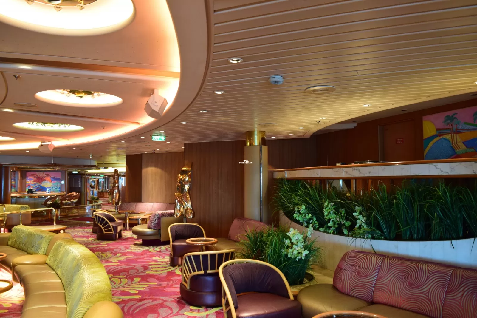 With a life size statue of a man and woman dancing at the entrance to the venue, the large (300 seat) lounge acts as the ships second entertainment venue with a host of entertainment and activities taking place throughout the day and night from seminars, enrichment lectures, live art auctions and trivia competitions to karaoke and game shows including The Quest game show and Majority Rules.
