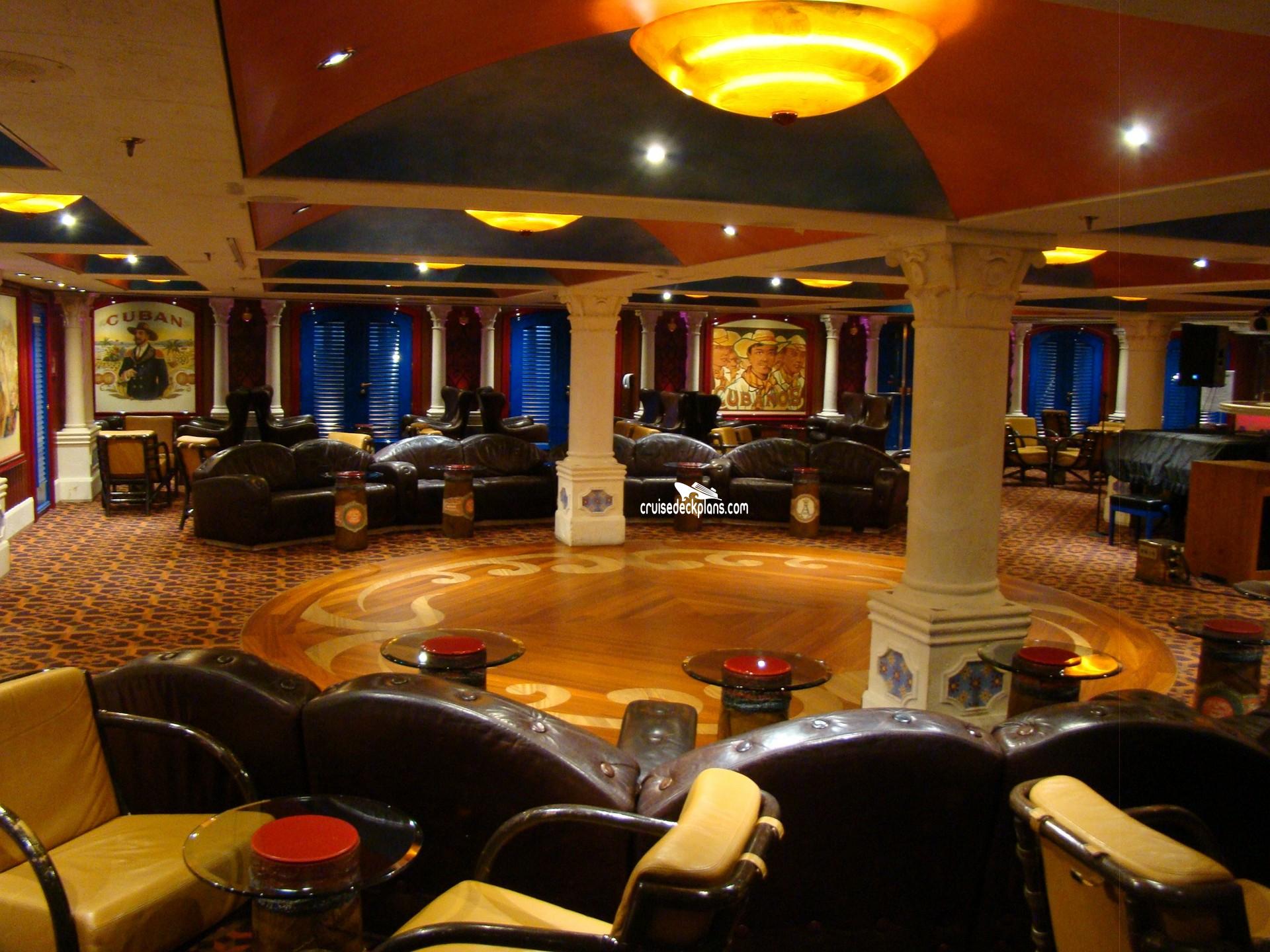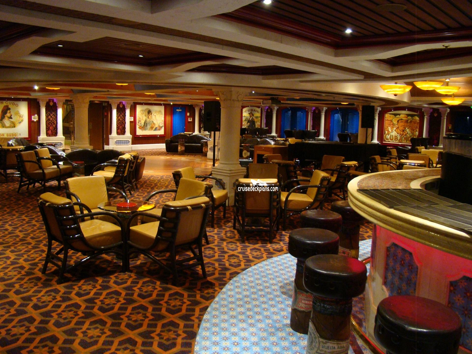 The ship's smoking lounge with bar and live Latin and Jazz music.