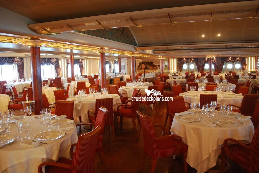 This page shows actual pictures for Silver Cloud The Restaurant. Most of our pictures are contributed by actual cruisers. You will find that all the Silver Cloud The Restaurant pictures on this page also posted directly onto our deck plans near the actual location the photo was taken. You can browse the pictures here or you can click on them as you are viewing the Silver Cloud deck plans. For deck plan viewing click on the ship button above or scroll down to view the pictures on this page.