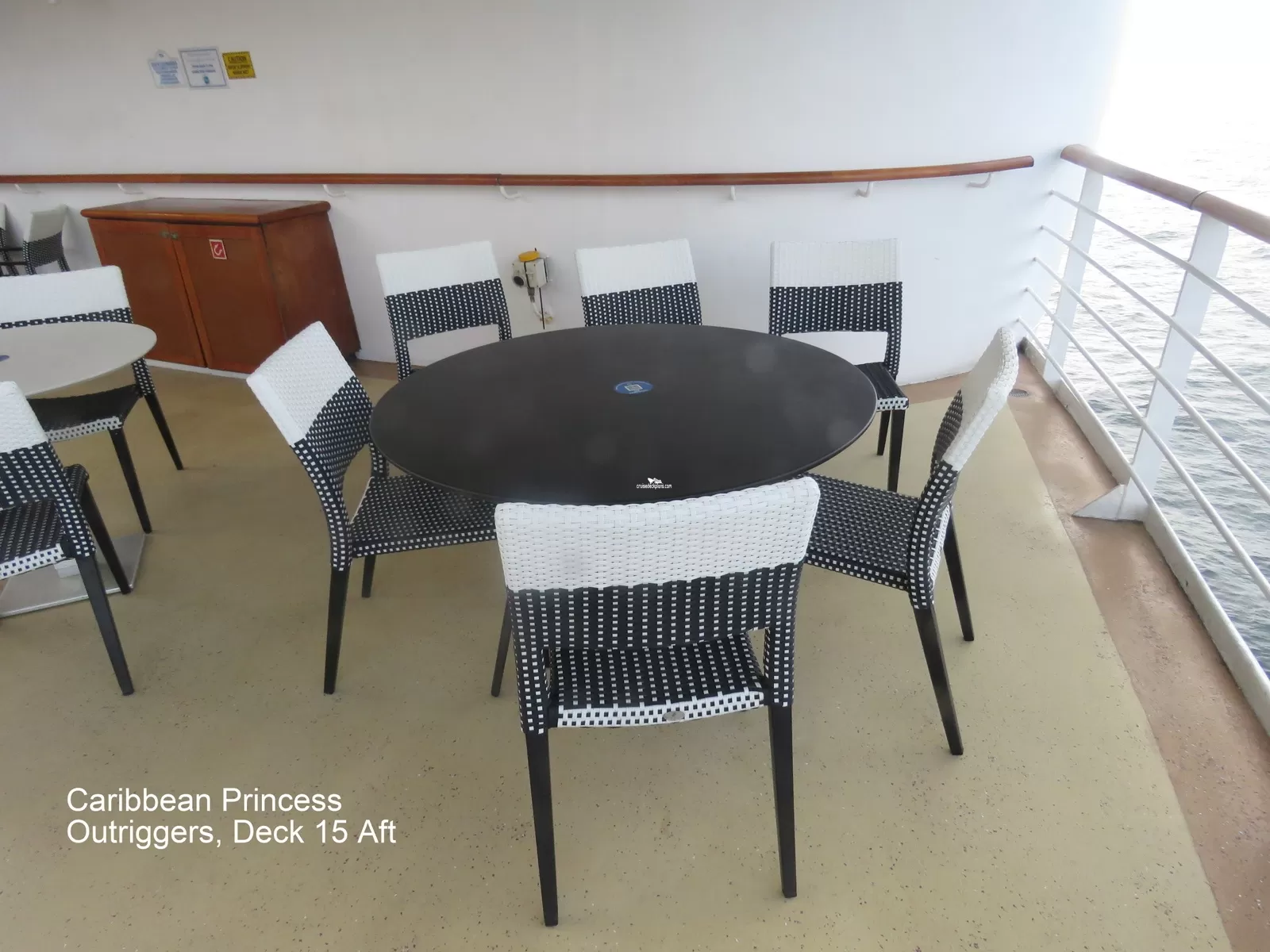 Outside seating area for buffet with Outrigger bar. Overlooks the small aft adult only pool.