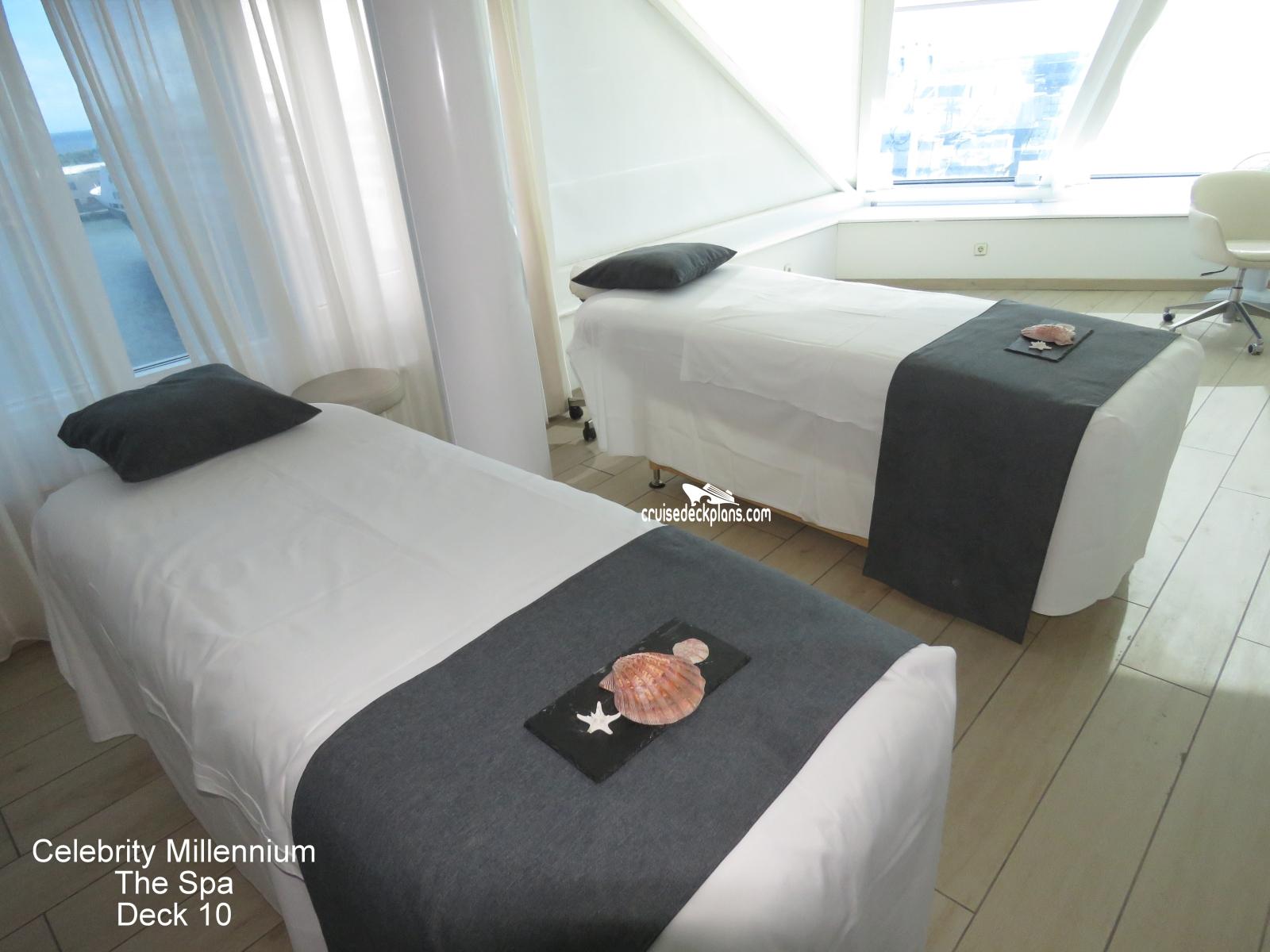 This page shows actual pictures for Celebrity Millennium Spa and Fitness Center. Most of our pictures are contributed by actual cruisers. You will find that all the Celebrity Millennium Spa and Fitness Center pictures on this page also posted directly onto our deck plans near the actual location the photo was taken. You can browse the pictures here or you can click on them as you are viewing the Celebrity Millennium deck plans. For deck plan viewing click on the ship button above or scroll down to view the pictures on this page.