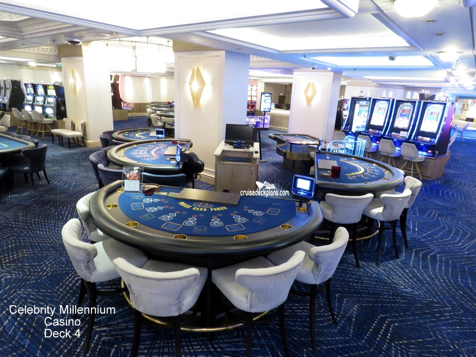 This page shows actual pictures for Celebrity Millennium Casino. Most of our pictures are contributed by actual cruisers. You will find that all the Celebrity Millennium Casino pictures on this page also posted directly onto our deck plans near the actual location the photo was taken. You can browse the pictures here or you can click on them as you are viewing the Celebrity Millennium deck plans. For deck plan viewing click on the ship button above or scroll down to view the pictures on this page.