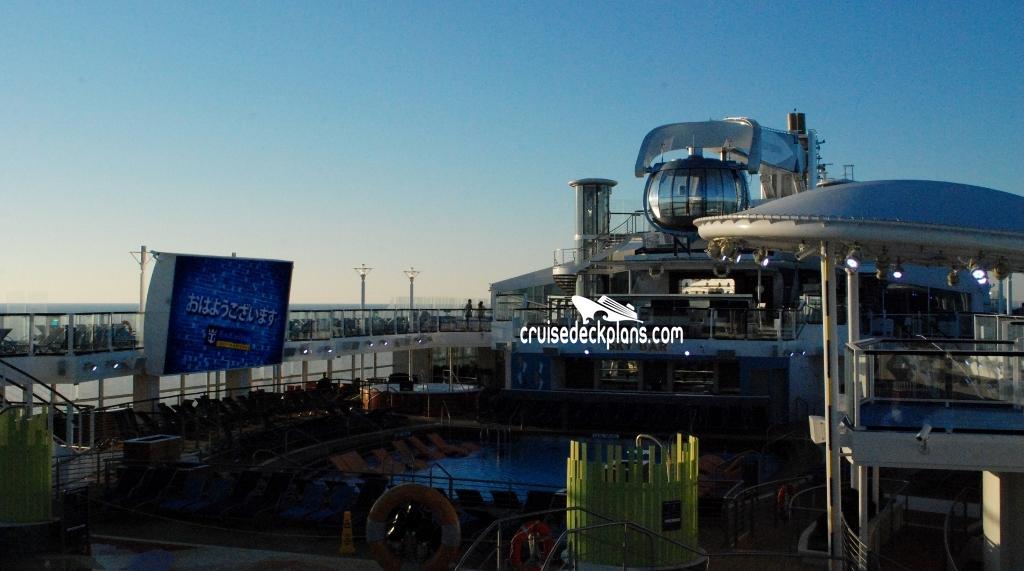 This page shows actual pictures for Quantum of the Seas Outdoor Pool. Most of our pictures are contributed by actual cruisers. You will find that all the Quantum of the Seas Outdoor Pool pictures on this page also posted directly onto our deck plans near the actual location the photo was taken. You can browse the pictures here or you can click on them as you are viewing the Quantum of the Seas deck plans. For deck plan viewing click on the ship button above or scroll down to view the pictures on this page.