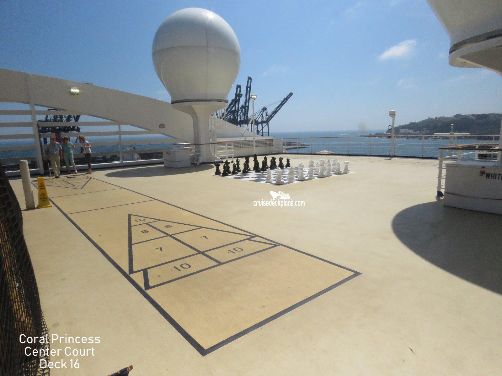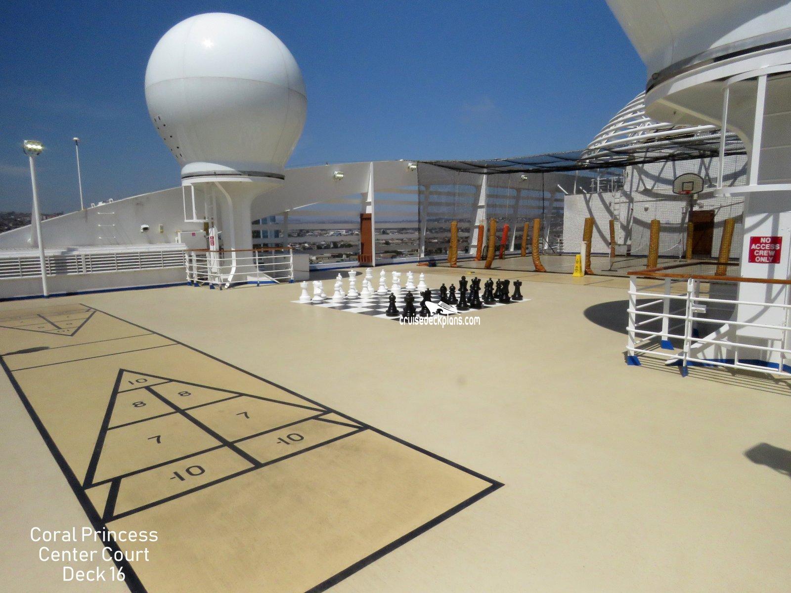 This page shows actual pictures for Coral Princess Sports Deck. Most of our pictures are contributed by actual cruisers. You will find that all the Coral Princess Sports Deck pictures on this page also posted directly onto our deck plans near the actual location the photo was taken. You can browse the pictures here or you can click on them as you are viewing the Coral Princess deck plans. For deck plan viewing click on the ship button above or scroll down to view the pictures on this page.