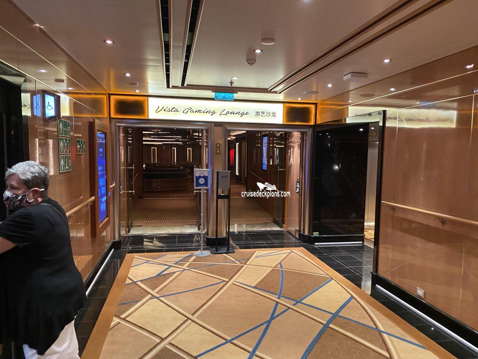 This page shows actual pictures for Majestic Princess Vista Gaming Lounge. Most of our pictures are contributed by actual cruisers. You will find that all the Majestic Princess Vista Gaming Lounge pictures on this page also posted directly onto our deck plans near the actual location the photo was taken. You can browse the pictures here or you can click on them as you are viewing the Majestic Princess deck plans. For deck plan viewing click on the ship button above or scroll down to view the pictures on this page.