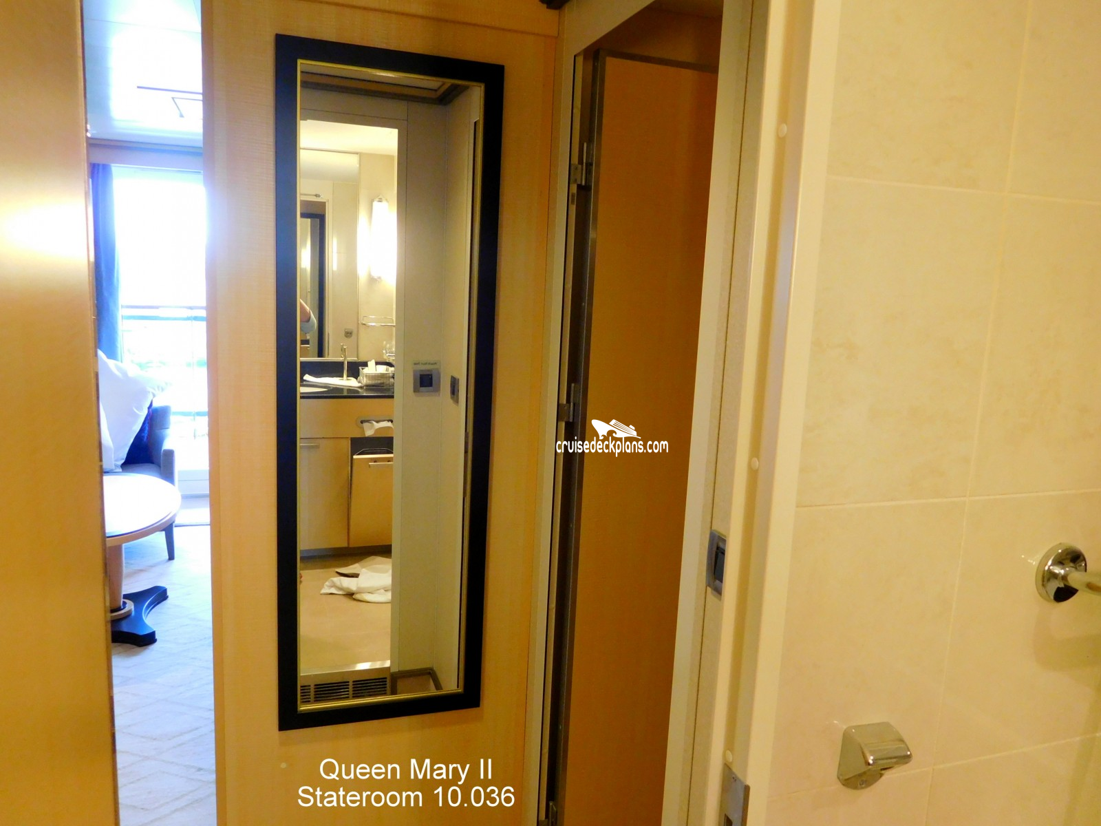 Queen Mary 2 Princess Suite cabin number 10036 ACTUAL videos and/or pictures, floor plans, diagrams and detailed features including a deck image of the actual location on the Queen Mary 2 ship for cabin 10036. Cruisedeckplans.com has 74,709 different (staterooms) cabins that have actual cabin pictures and/or cabin videos taken by real cruisers. That is plenty of coverage to provide you with a good sampling of all the different cabins on cruise ships. Take a minute and notice the breadcrumb menu above. This is a quick easy way to navigate our website. You can also use the menu above for menu items specific to the Queen Mary 2 cruise ship.