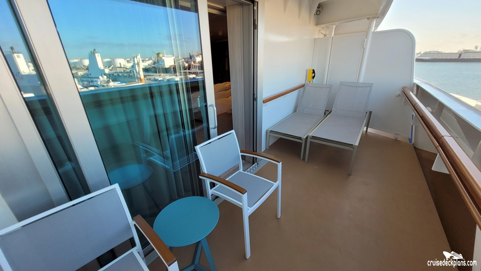 - Some cabins have bed close to the balcony, others have sofa close to the balcony.