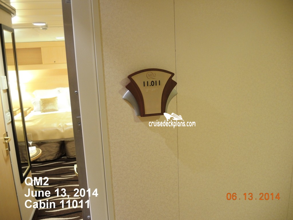 Queen Mary 2 Inside cabin number 11011 ACTUAL videos and/or pictures, floor plans, diagrams and detailed features including a deck image of the actual location on the Queen Mary 2 ship for cabin 11011. Cruisedeckplans.com has 74,614 different (staterooms) cabins that have actual cabin pictures and/or cabin videos taken by real cruisers. That is plenty of coverage to provide you with a good sampling of all the different cabins on cruise ships. Take a minute and notice the breadcrumb menu above. This is a quick easy way to navigate our website. You can also use the menu above for menu items specific to the Queen Mary 2 cruise ship.