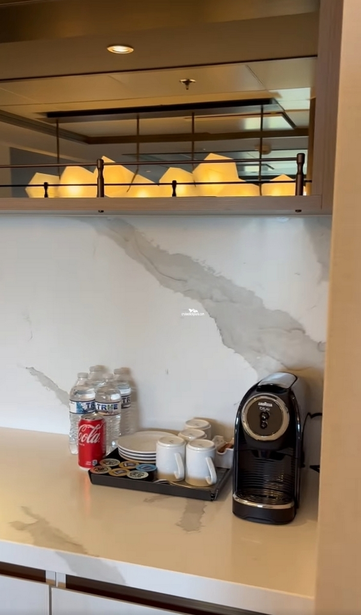 Pillow Menu / Complimentary bottled water, soda, and beer stocked daily / Complimentary in-suite espresso and cappuccino / Unlimited lunch and dinner in all specialty restaurants(some exclusions) / Two complimentary bottles of premium spirits / The Retreat premium pajamas / Unlimited access to the SEA Thermal Suite / VIP canapés / Complimentary laundry service / Unlimited complimentary pressing / Priority luggage delivery / Option to dine at luminae / Expanded room service breakfast menu / Full in-suite breakfast, lunch, and dinner service / Afternoon tea event hosted in exclusive lounge / Dedicated butler / Dedicated concierge service / Priority checkin, departure, & port tendering / Reserved theature seating on evening chic nights / Welcome bottle of champagne/sparkling wine / Sparkling wine upon request / Daily delights / Retreat lounge/ michaels club / Retreat sundeck (not on all ships) / Premium drinks / Wi-fi package /