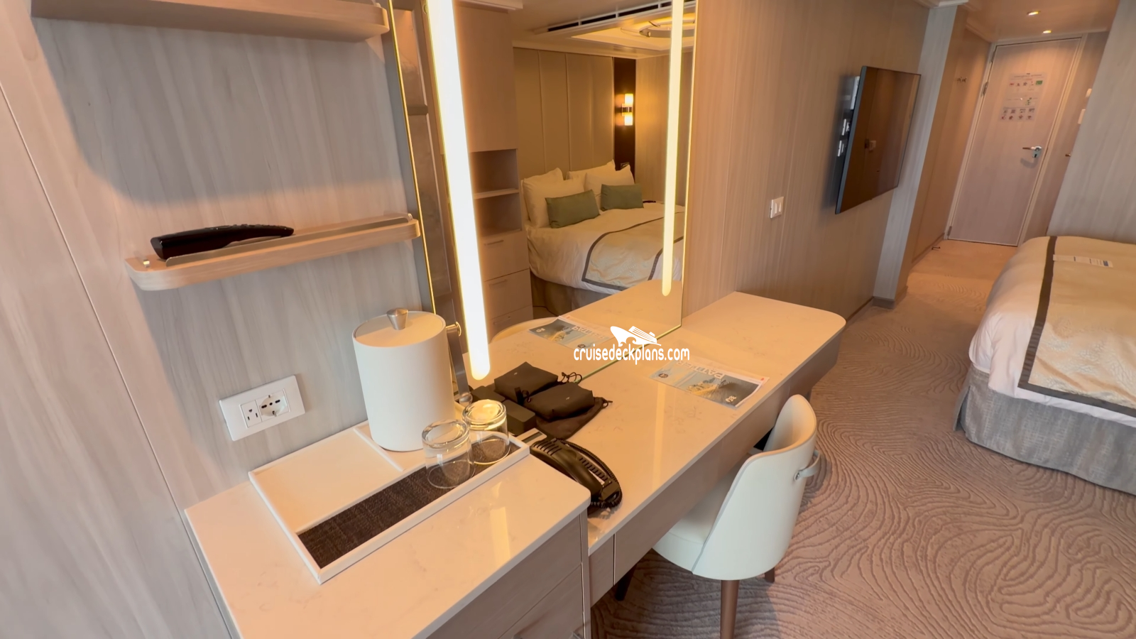 - Some cabins have bed close to the bathroom, others have closet close to the bathroom.
