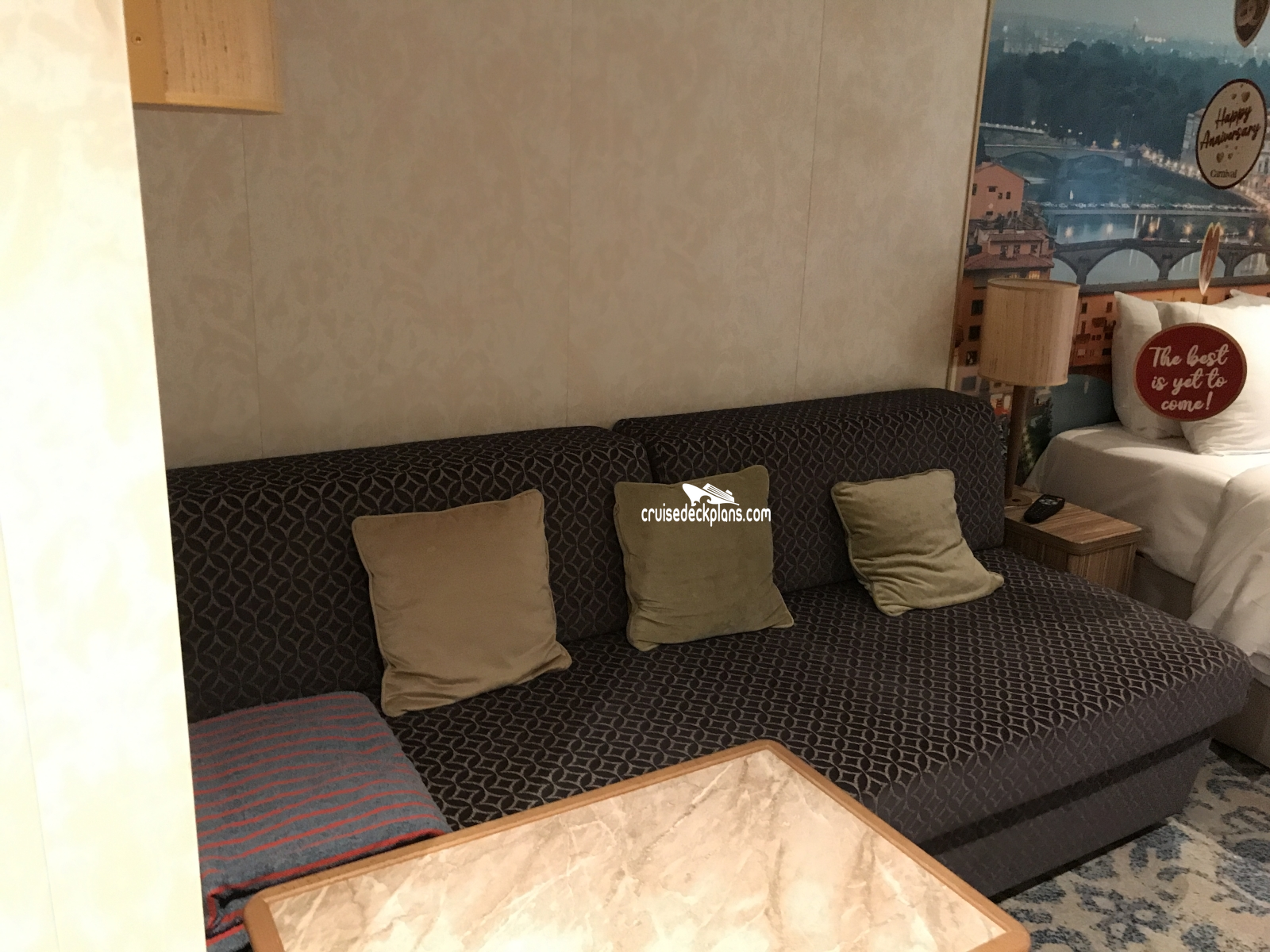 These are some actual stateroom pictures of cabin 12211 on the Carnival Firenze. Click on images below for larger image and slide show. The slide show will show the date the picture was uploaded to out website. This date is useful because Carnival Firenze typically will update its cabins every three to five years with new carpeting and decor. We will keep older pictures for you to compare the more recent photos to. The pictures are sorted by the newest ones first. Most of our cabin pictures are contributed by actual cruisers. We pay 50 cents for any that we use. You can upload your cabin photos HERE. Afer you are done looking at these photos and/or the videos below you can click here to select another cabin.
