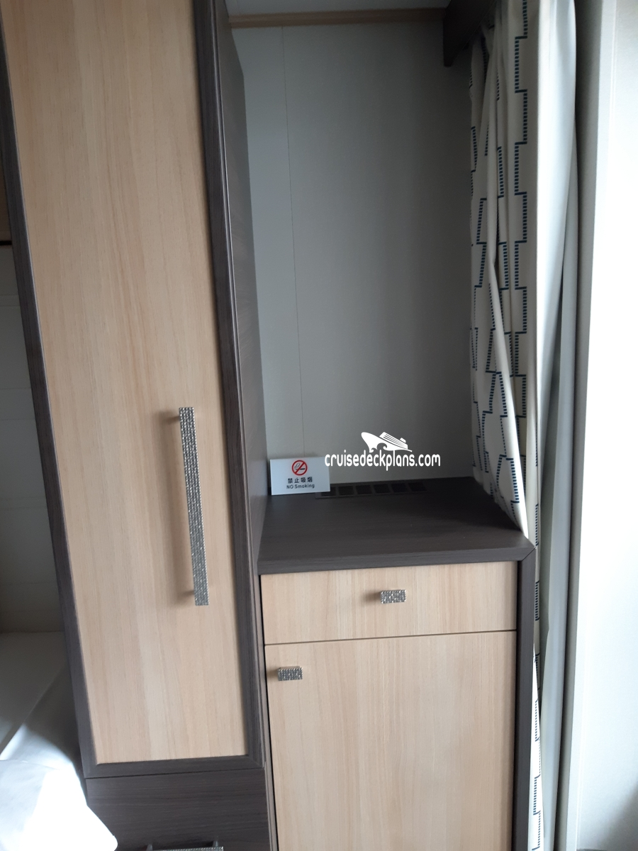 These are some actual stateroom pictures of cabin 12252 on the Quantum of the Seas. Click on images below for larger image and slide show. The slide show will show the date the picture was uploaded to out website. This date is useful because Quantum of the Seas typically will update its cabins every three to five years with new carpeting and decor. We will keep older pictures for you to compare the more recent photos to. The pictures are sorted by the newest ones first. Most of our cabin pictures are contributed by actual cruisers. We pay 50 cents for any that we use. You can upload your cabin photos HERE. Afer you are done looking at these photos and/or the videos below you can click here to select another cabin.