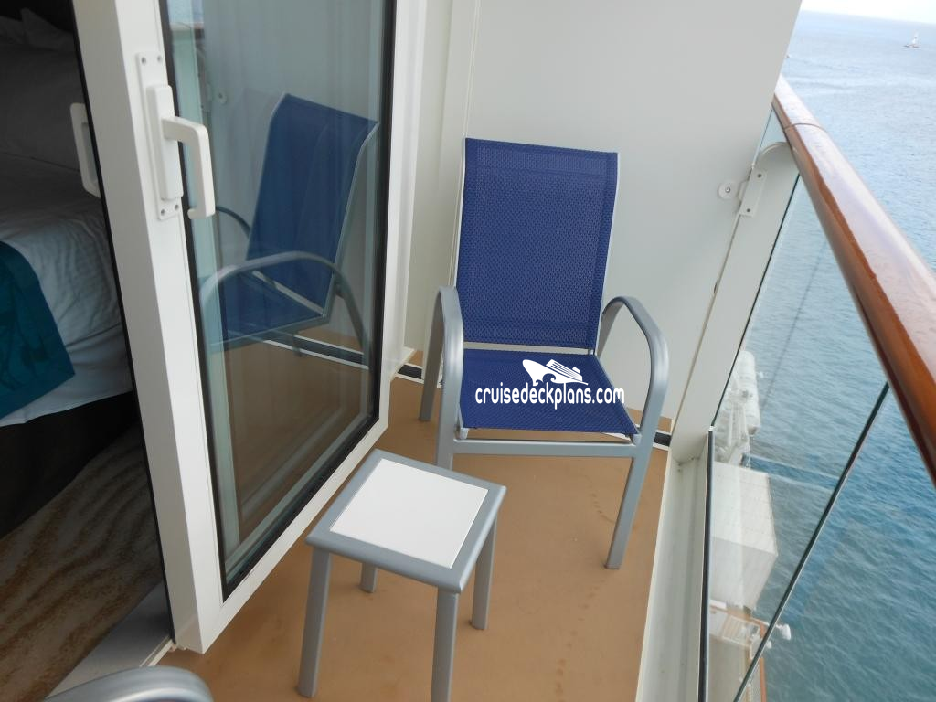 Aft B1 Balconies are 55 to 168 square feet. Category B6 balconies are 70 square feet. Handicap cabins range from 370 to 468 square feet including balcony.