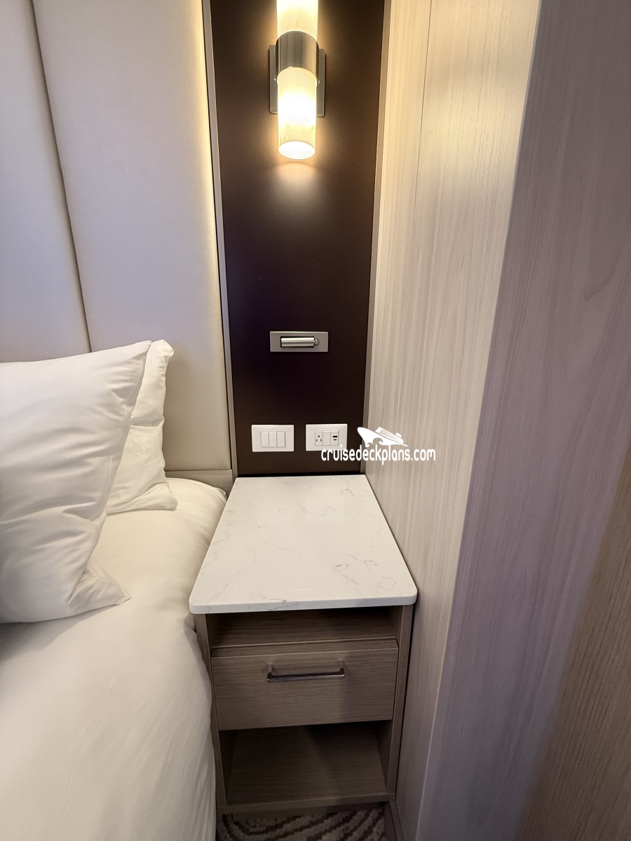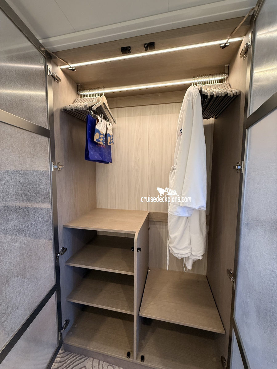 - Some cabins have bed close to the bathroom, others have closet close to the bathroom.