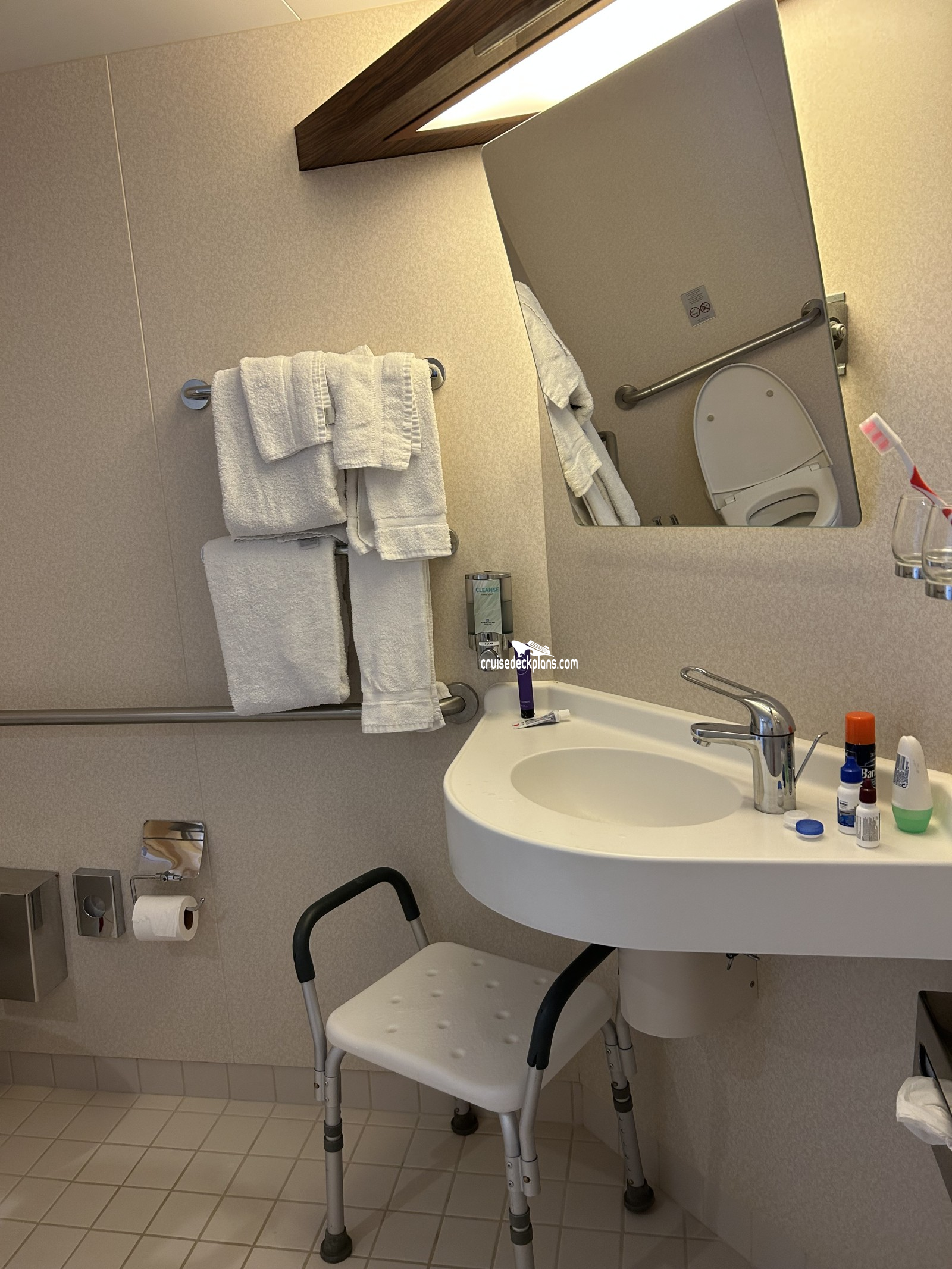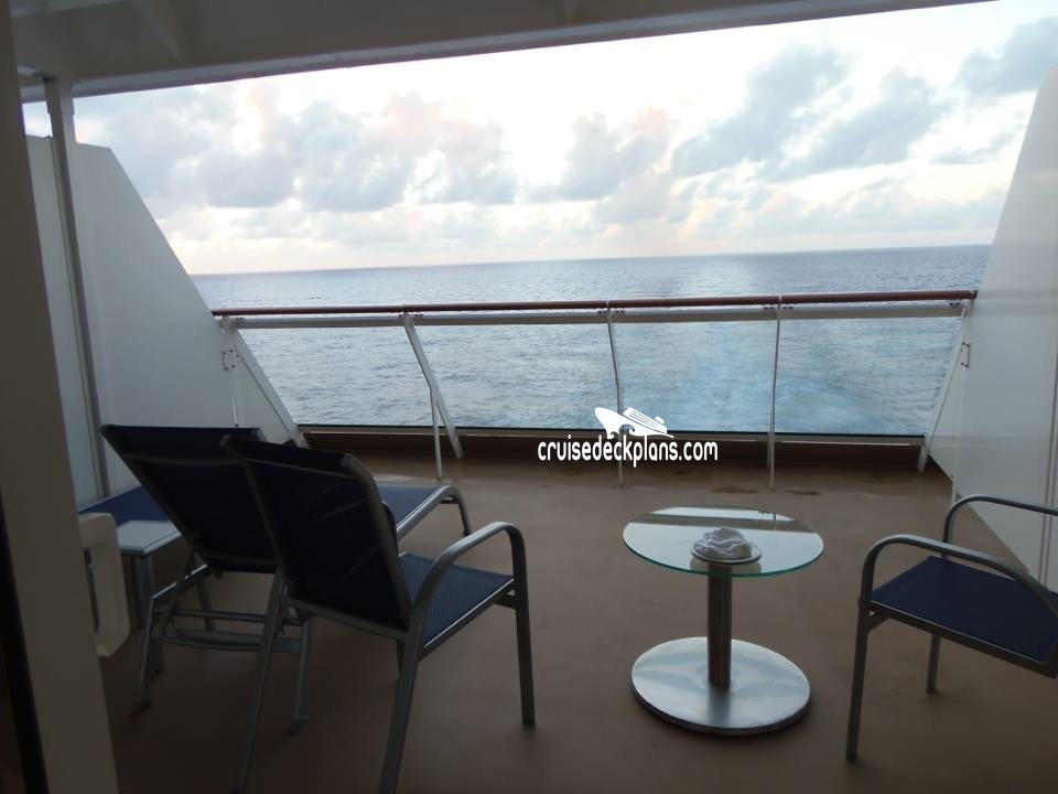 Aft B1 Balconies are 55 to 168 square feet. Category B6 balconies are 70 square feet. Handicap cabins range from 370 to 468 square feet including balcony.