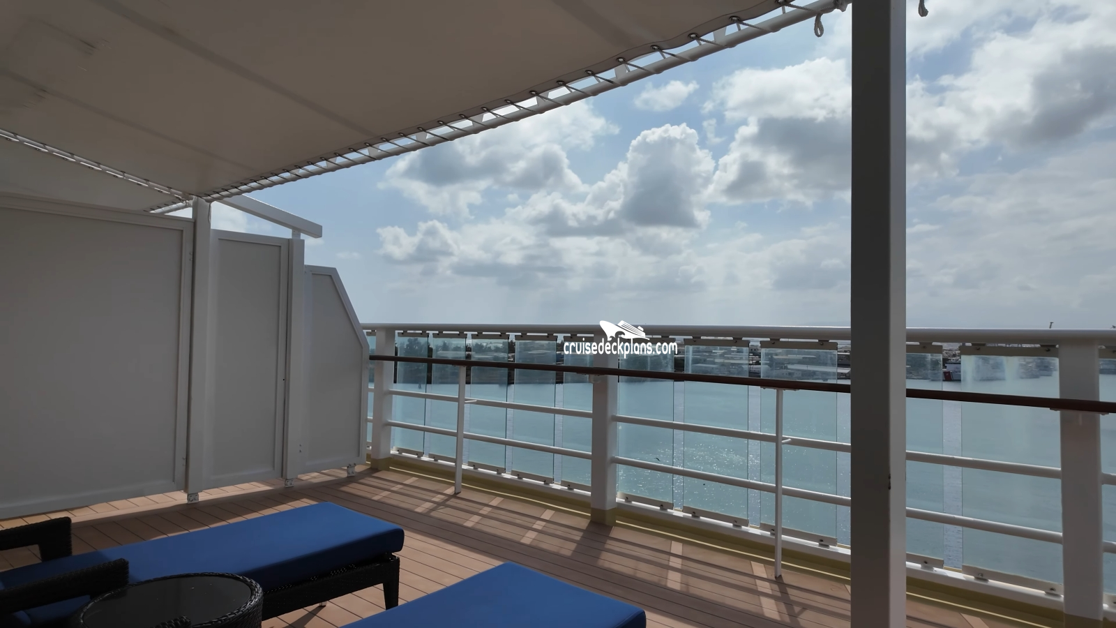 Category SE cabins are 394 to 410 square feet with additional188 square foot balcony. Category SF cabins are from 299 to 306 square feet with additional 188 to 306 square foot balcony. Category SD is 880 square feet.