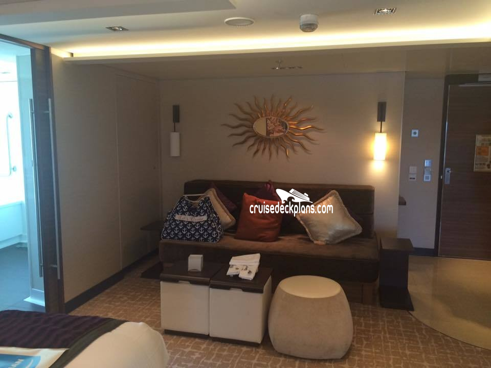 Butler Service / Concierge Service / Priority Check In / Priority Debarkation / Priority Tender Boarding / Dining in the Stateroom / Welcome Champagne / Exclusive Lounge / Exclusive Pool / Exclusive Outdoor Lounge / Thick Cotton Robes / Pillow Menu / Espresso & Cappuccino machine / Special suite menus / Bliss collection pillow-top mattress / Treats delivered to door every night / Courtyard valet / Escort to suite /