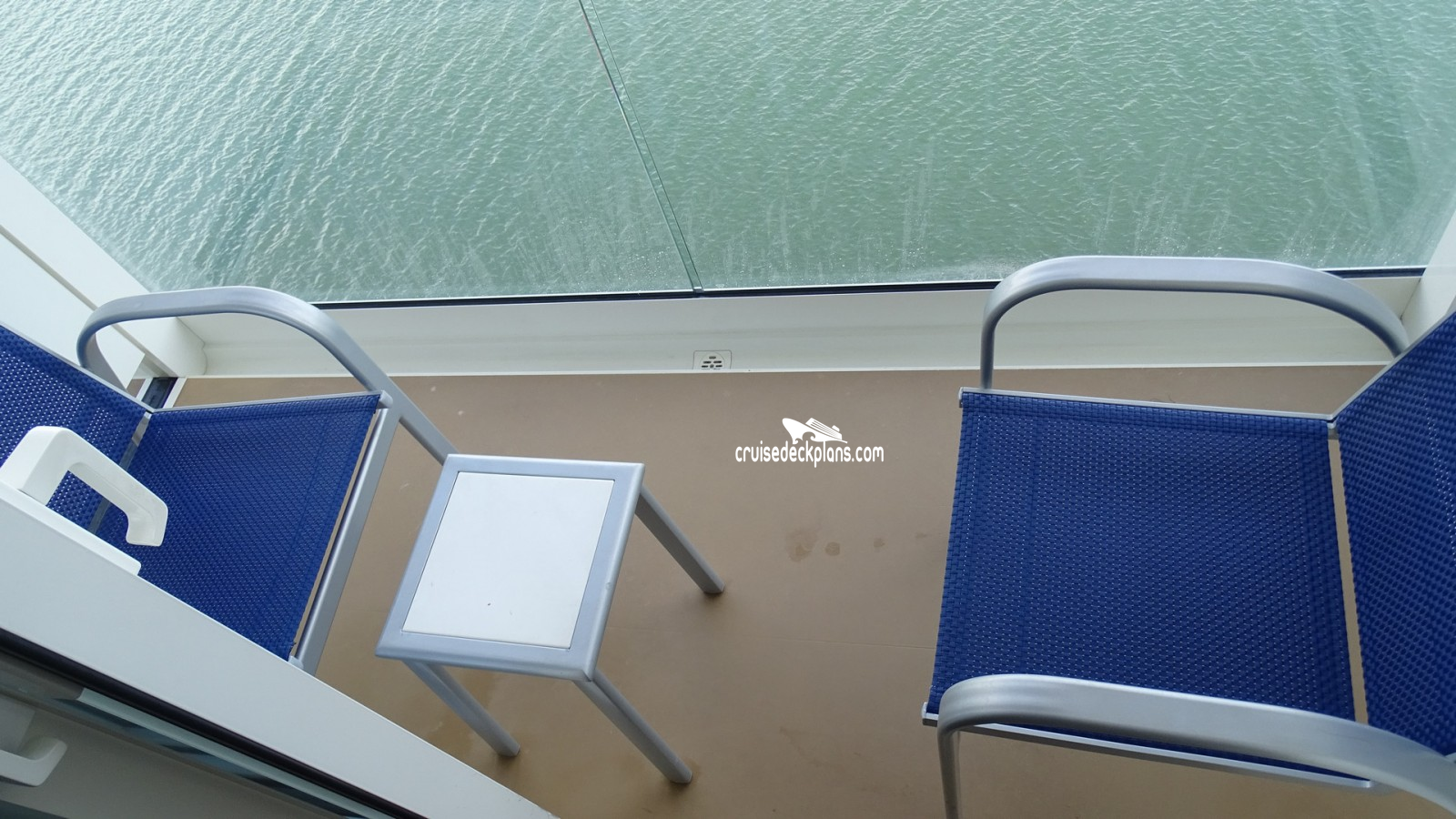 Aft B1 Balconies are 55 to 168 square feet. Category B6 balconies are 70 square feet. Handicap cabins range from 370 to 468 square feet including balcony.