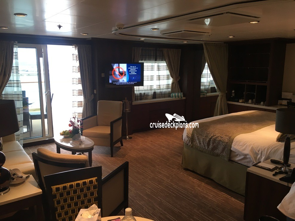 Butler Service / Concierge Service / Priority Check In / Priority Debarkation / Priority Tender Boarding / Welcome Champagne / Thick Cotton Robes / Pillow Menu / Espresso & Cappuccino machine / Special suite menus / Bliss collection pillow-top mattress / Treats delivered to door every night /