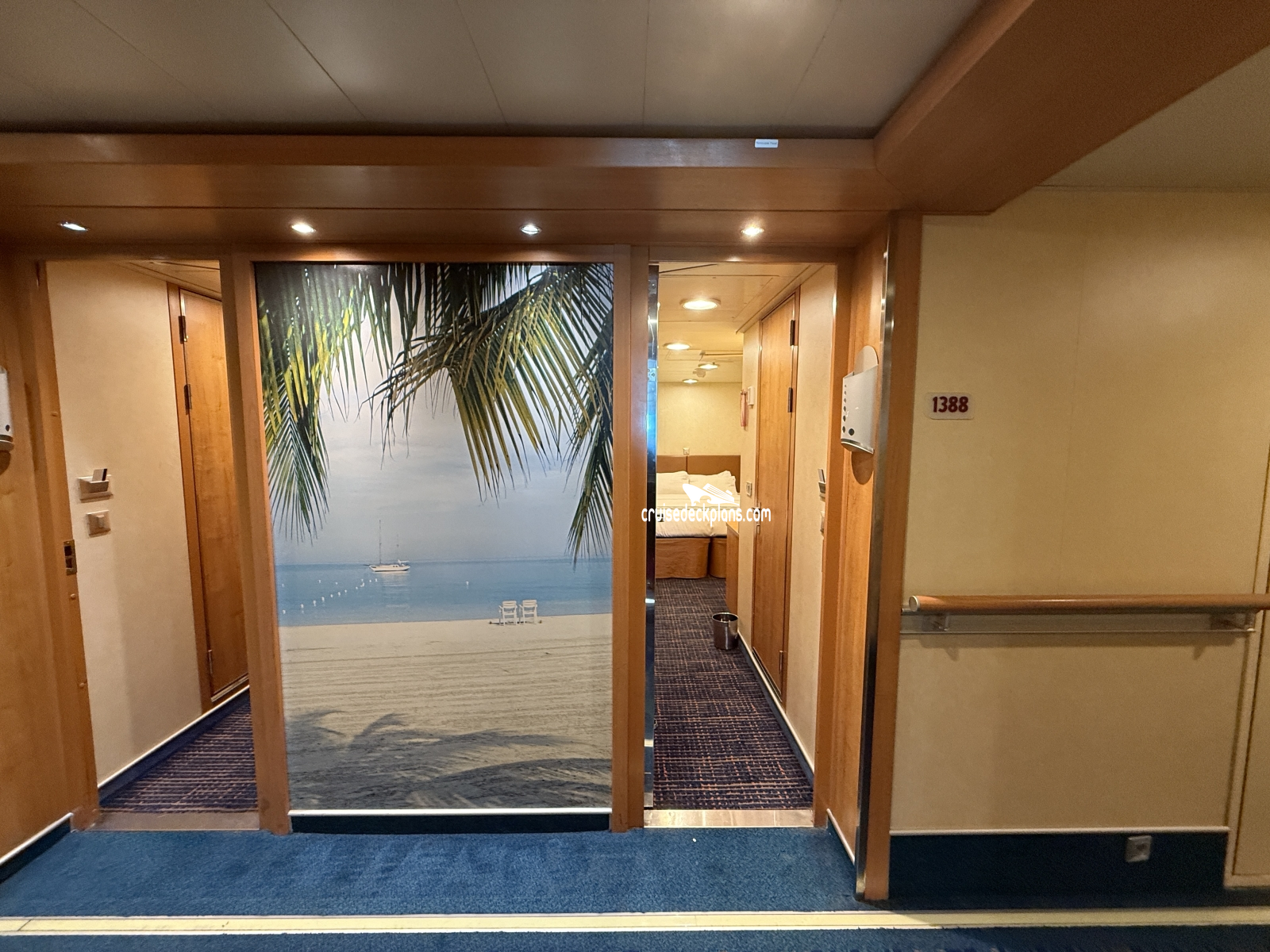 Carnival Breeze Interior cabin number 1388 ACTUAL videos and/or pictures, floor plans, diagrams and detailed features including a deck image of the actual location on the Carnival Breeze ship for cabin 1388. Cruisedeckplans.com has 73,071 different (staterooms) cabins that have actual cabin pictures and/or cabin videos taken by real cruisers. That is plenty of coverage to provide you with a good sampling of all the different cabins on cruise ships. Take a minute and notice the breadcrumb menu above. This is a quick easy way to navigate our website. You can also use the menu above for menu items specific to the Carnival Breeze cruise ship.