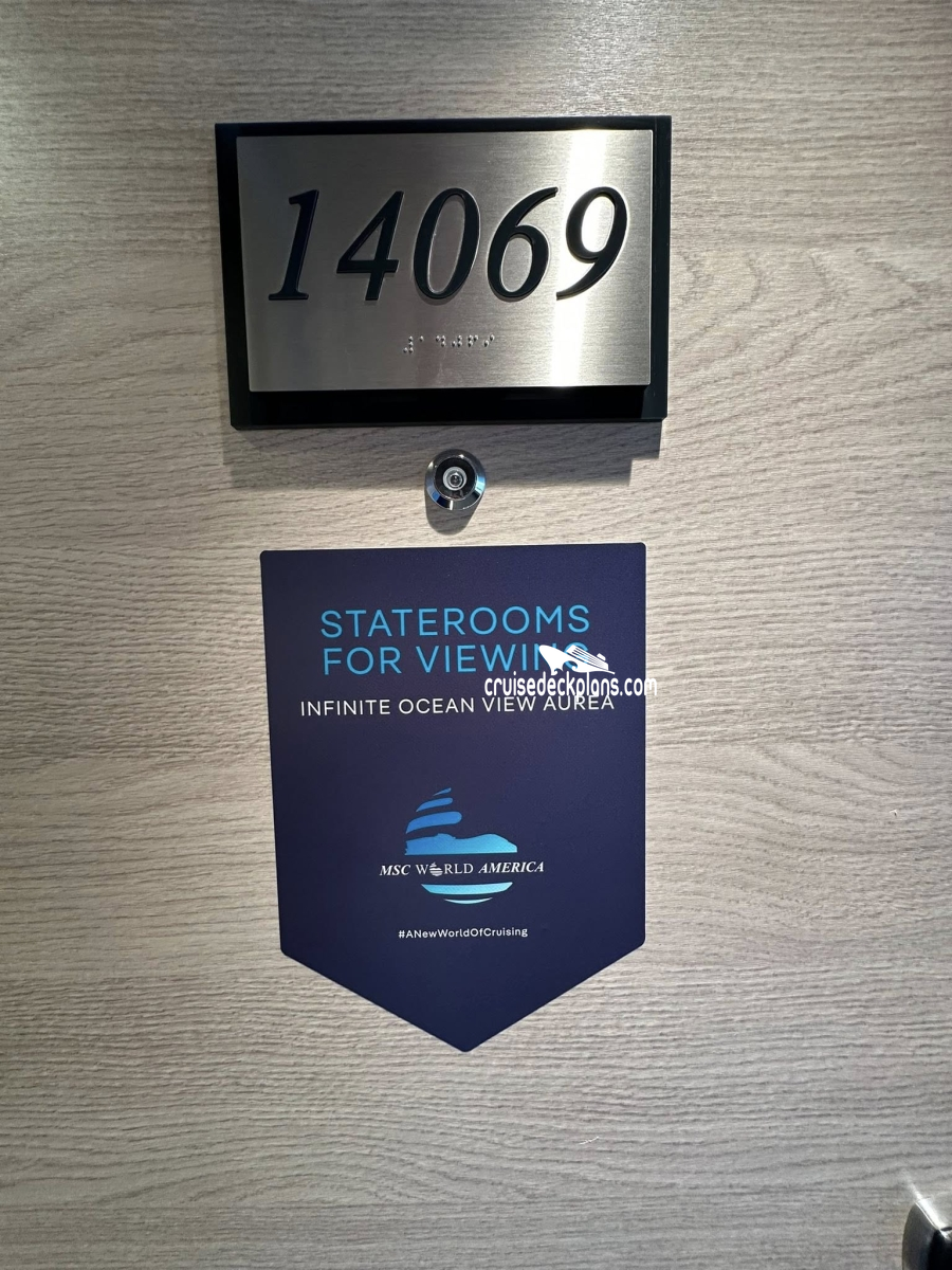 MSC World America Infinite Ocean View cabin number 14069 ACTUAL videos and/or pictures, floor plans, diagrams and detailed features including a deck image of the actual location on the MSC World America ship for cabin 14069. Cruisedeckplans.com has 75,125 different (staterooms) cabins that have actual cabin pictures and/or cabin videos taken by real cruisers. That is plenty of coverage to provide you with a good sampling of all the different cabins on cruise ships. Take a minute and notice the breadcrumb menu above. This is a quick easy way to navigate our website. You can also use the menu above for menu items specific to the MSC World America cruise ship.