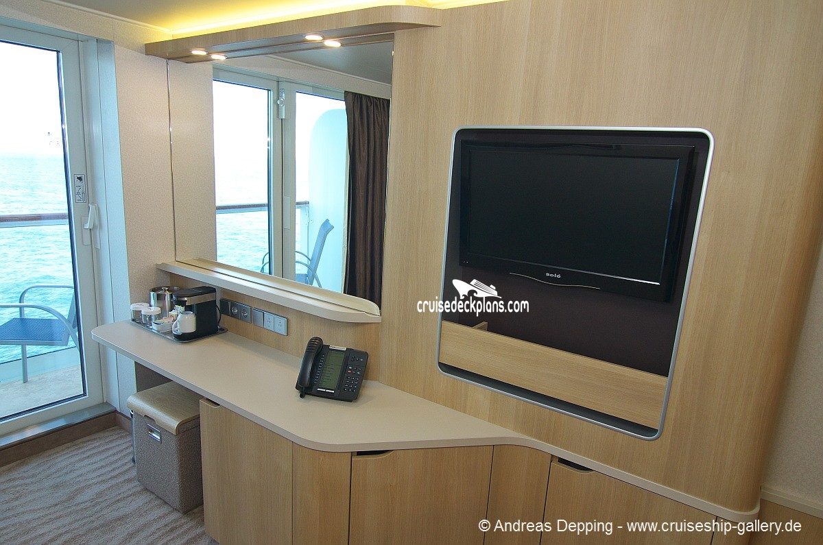 Aft B1 Balconies are 55 to 168 square feet. Category B6 balconies are 70 square feet. Handicap cabins range from 370 to 468 square feet including balcony.