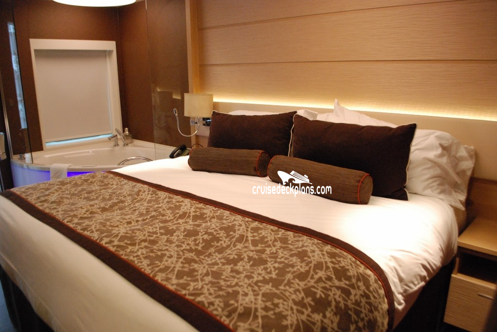 Butler Service / Concierge Service / Priority Check In / Priority Debarkation / Priority Tender Boarding / Dining in the Stateroom / Welcome Champagne / Exclusive Lounge / Exclusive Pool / Exclusive Outdoor Lounge / Thick Cotton Robes / Pillow Menu / Espresso & Cappuccino machine / Special suite menus / Bliss collection pillow-top mattress / Treats delivered to door every night / Courtyard valet / Escort to suite /