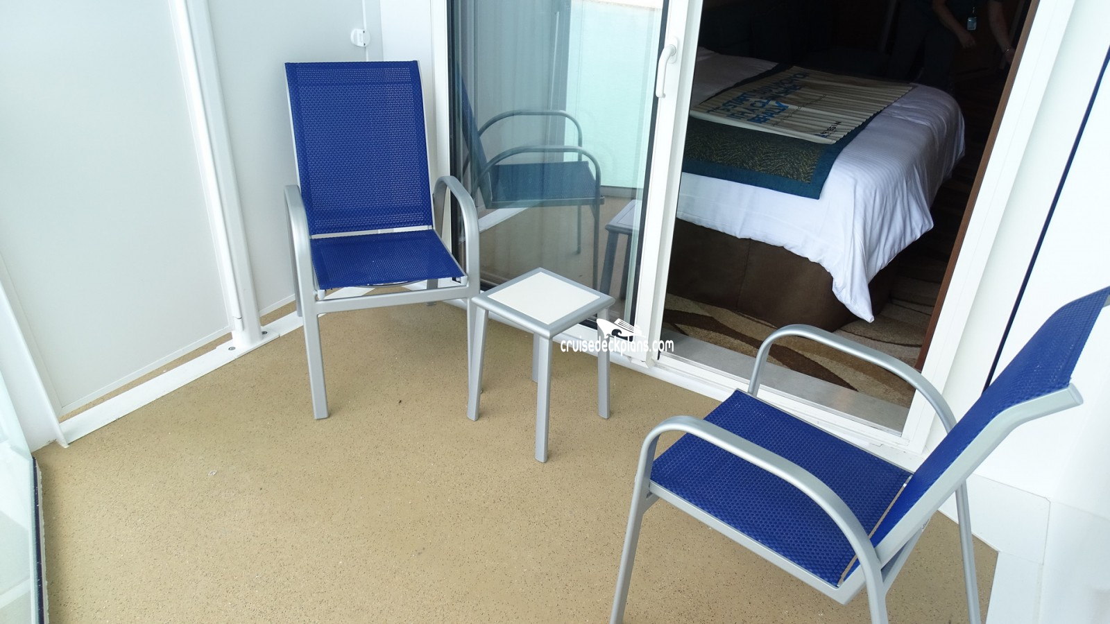Aft B1 Balconies are 44 to 77 square feet. Category B6 balconies are 70 square feet.