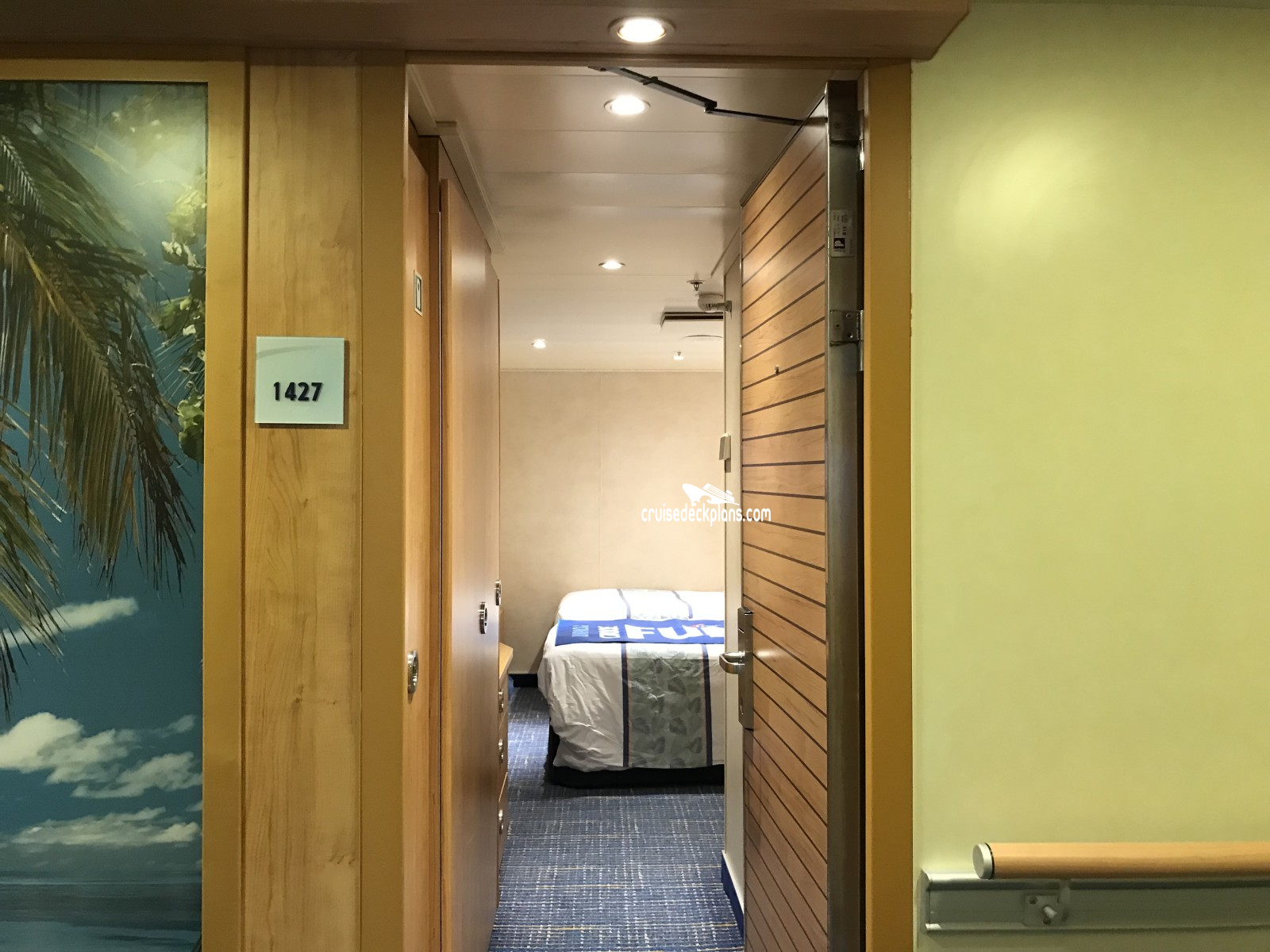 These are some actual stateroom pictures of cabin 1427 on the Carnival Radiance. Click on images below for larger image and slide show. The slide show will show the date the picture was uploaded to out website. This date is useful because Carnival Radiance typically will update its cabins every three to five years with new carpeting and decor. We will keep older pictures for you to compare the more recent photos to. The pictures are sorted by the newest ones first. Most of our cabin pictures are contributed by actual cruisers. We pay 50 cents for any that we use. You can upload your cabin photos HERE. Afer you are done looking at these photos and/or the videos below you can click here to select another cabin.