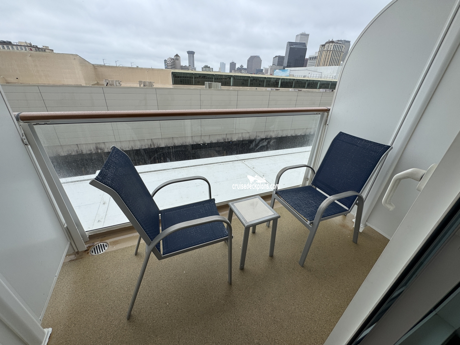 Aft B1 Balconies are 44 to 77 square feet. Category B6 balconies are 70 square feet.