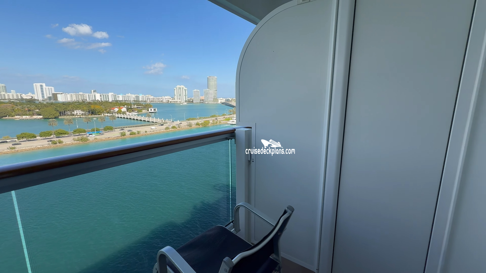 Deck 9 category B3 cabins on port and starboard side will have balcony partitions that do not extend all the way to the railing. This means that the area around the railing will have clear dividers (railing height) between balconies. You will be able to see your neighbors balcony.