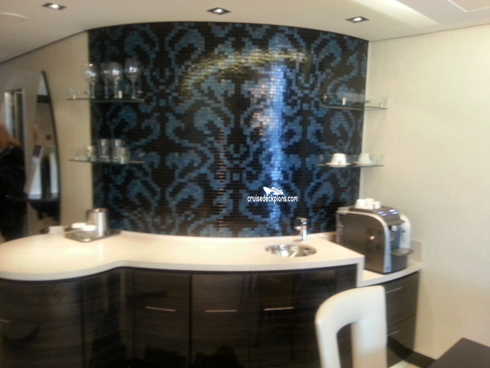 Butler Service / Concierge Service / Priority Check In / Priority Debarkation / Priority Tender Boarding / Dining in the Stateroom / Welcome Champagne / Exclusive Lounge / Exclusive Pool / Exclusive Outdoor Lounge / Thick Cotton Robes / Pillow Menu / Espresso & Cappuccino machine / Special suite menus / Bliss collection pillow-top mattress / Treats delivered to door every night / Courtyard valet / Escort to suite /