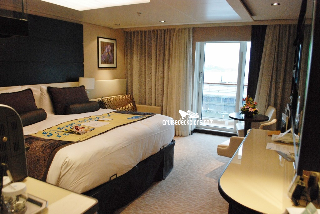 Butler Service / Concierge Service / Priority Check In / Priority Debarkation / Priority Tender Boarding / Dining in the Stateroom / Welcome Champagne / Exclusive Lounge / Exclusive Pool / Exclusive Outdoor Lounge / Thick Cotton Robes / Pillow Menu / Espresso & Cappuccino machine / Special suite menus / Bliss collection pillow-top mattress / Treats delivered to door every night / Courtyard valet / Escort to suite /