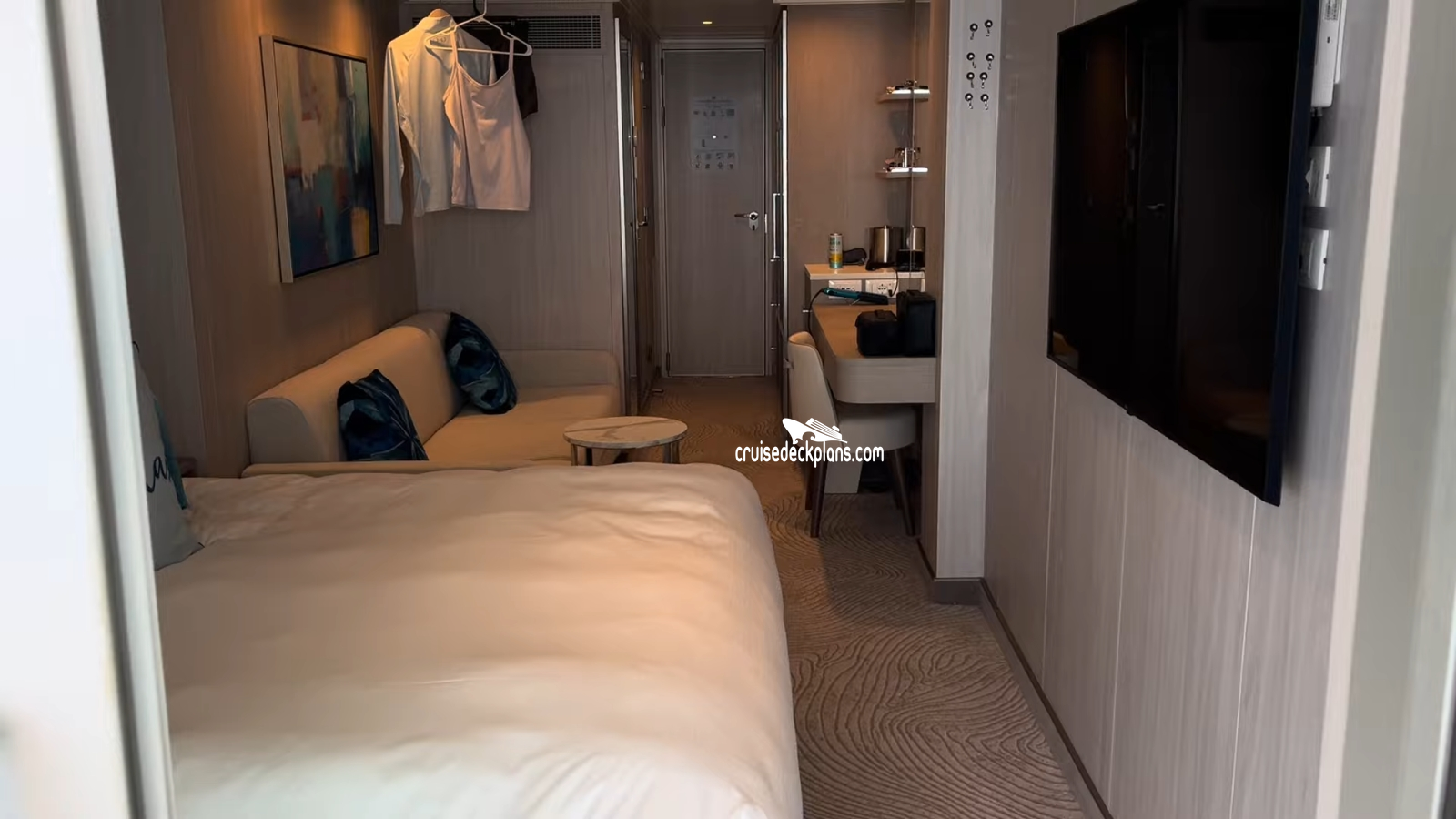 - Some cabins have bed close to the balcony, others have sofa close to the balcony.