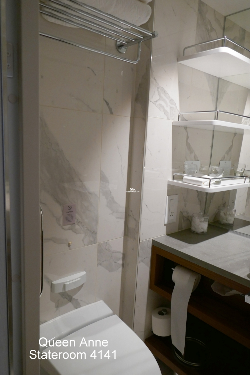 These are some actual stateroom pictures of cabin 4141 on the Queen Anne. Click on images below for larger image and slide show. The slide show will show the date the picture was uploaded to out website. This date is useful because Queen Anne typically will update its cabins every three to five years with new carpeting and decor. We will keep older pictures for you to compare the more recent photos to. The pictures are sorted by the newest ones first. Most of our cabin pictures are contributed by actual cruisers. We pay 50 cents for any that we use. You can upload your cabin photos HERE. Afer you are done looking at these photos and/or the videos below you can click here to select another cabin.