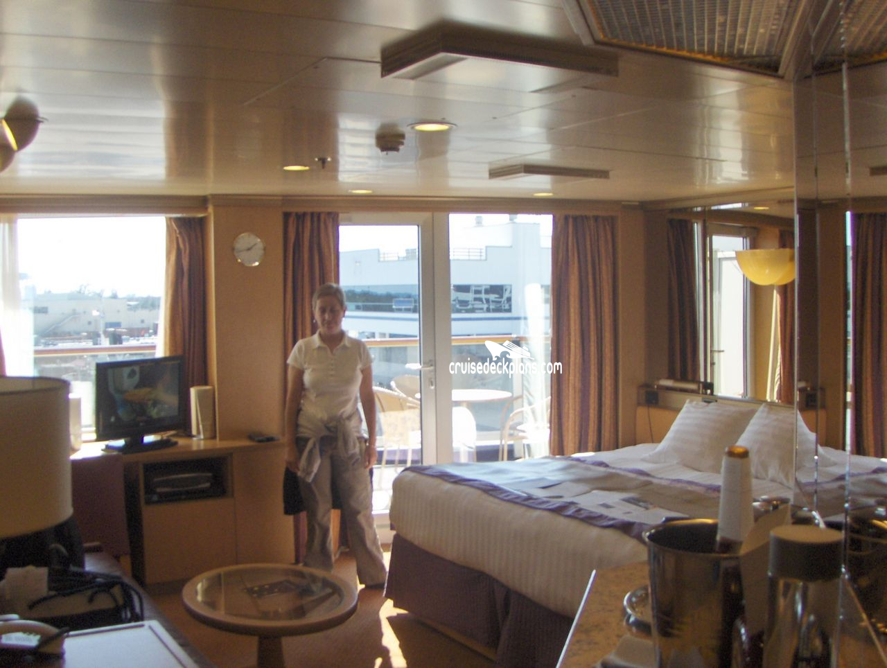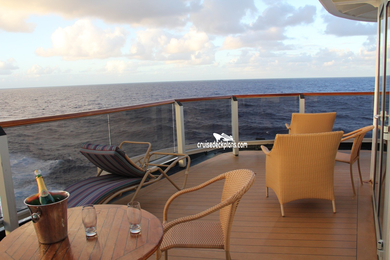 Concierge Service / Priority Check In / Priority Debarkation / Priority Tender Boarding / Afternoon Canapes / Afternoon Tea / Complimentary Shoe Shine / Welcome Champagne / Exclusive Lounge / Exclusive Full Breakfast Restaurant / Priority Dining Reservations / Complimentary Laundry / Thick Cotton Robes / Pillow Menu / Signature Mariner's Dream bed with plush euro-top mattress and finely woven cotton linens / Lighted magnifying mirrors / Massage showerheads / Salon-quality hair dryer / Elemis Aromapure bath products / Flat-panel TV and DVD player / complimentary DVD library / Personalized cruise stationary / Umbrella & binocular usage / Gorgeous corsages and boutonnieres for the first formal night / Cocktail party with ship's officers / Premium duvet / Complimentary bottled water at embarkation / Bose docking station / Complimentary mimosas with in-suite breakfast / In-suite coffee maker and espresso machine. /