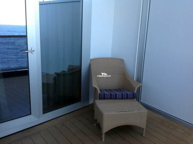 Indented balconies on deck 5 (where the deck is narrow) are 4.5 feet deep. Standard depth is 5.5 feet deep.