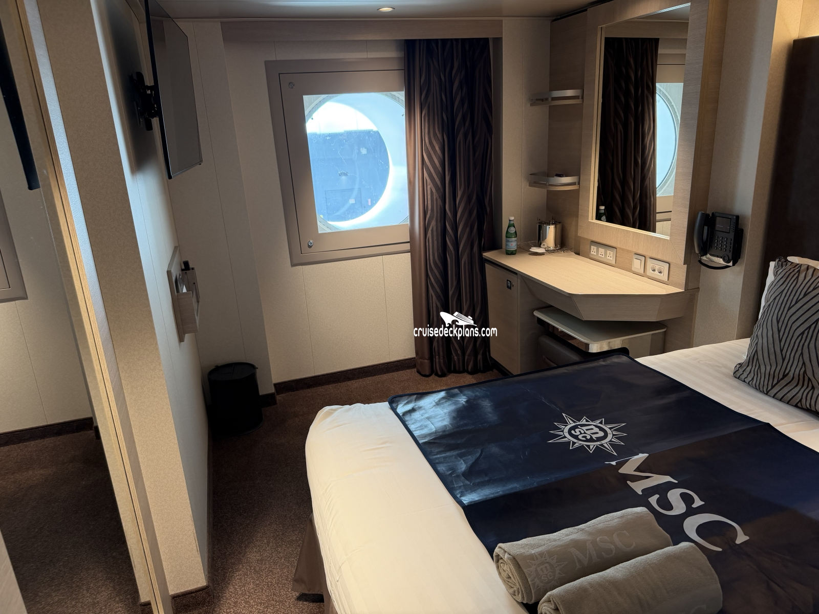 These are some actual stateroom pictures of cabin 5007 on the MSC World America. Click on images below for larger image and slide show. The slide show will show the date the picture was uploaded to out website. This date is useful because MSC World America typically will update its cabins every three to five years with new carpeting and decor. We will keep older pictures for you to compare the more recent photos to. The pictures are sorted by the newest ones first. Most of our cabin pictures are contributed by actual cruisers. We pay 50 cents for any that we use. You can upload your cabin photos HERE. Afer you are done looking at these photos and/or the videos below you can click here to select another cabin.